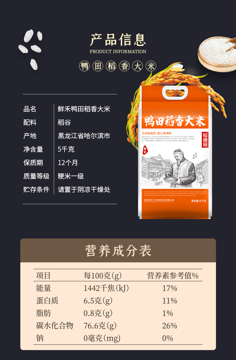 裕道府 鲜禾鸭田 稻香大米 5kg 炫橙色(单位:袋)