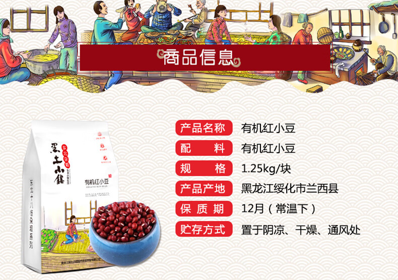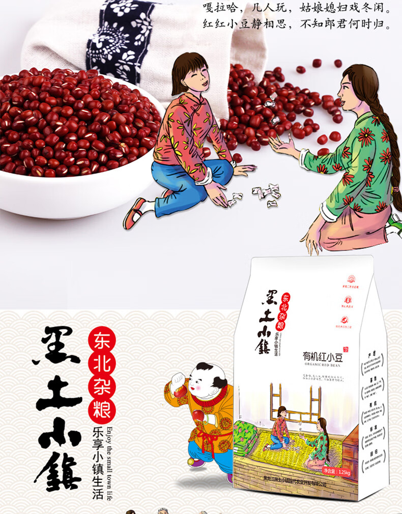 黑土小镇 有机红小豆 五谷杂粮 1.25kg 混色(单位:袋)