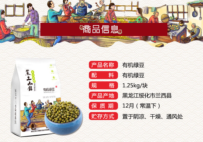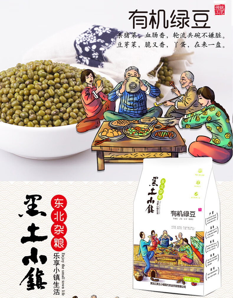 黑土小镇 有机绿豆 五谷杂粮 1.25kg 混色(单位:袋)