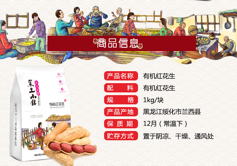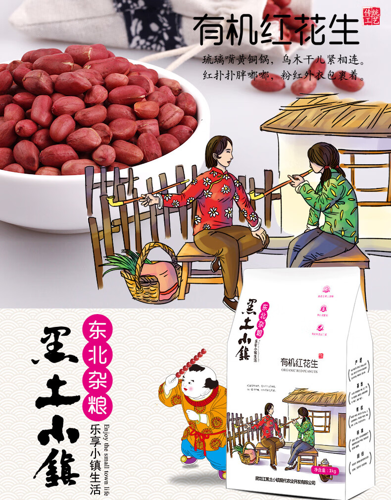 黑土小镇 有机红花生 五谷杂粮 1kg 混色(单位:袋)