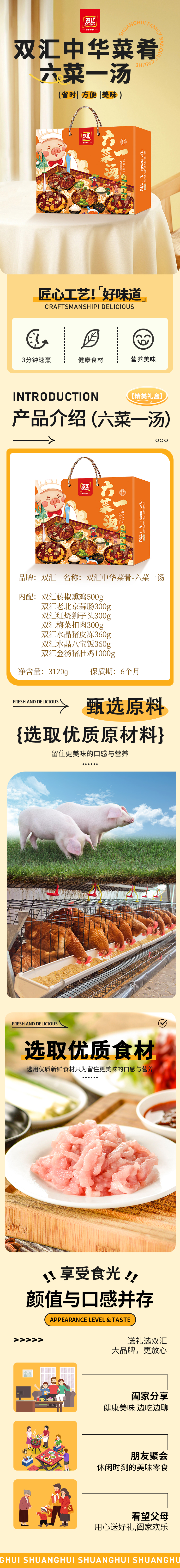 双汇 中华菜肴-六菜一汤 休闲礼盒 3120g 黄色(单位:盒)