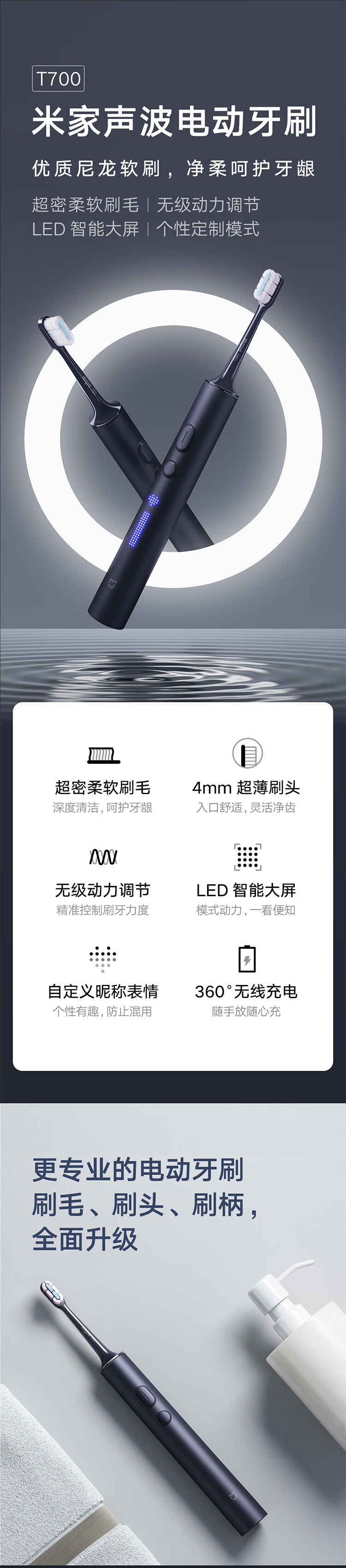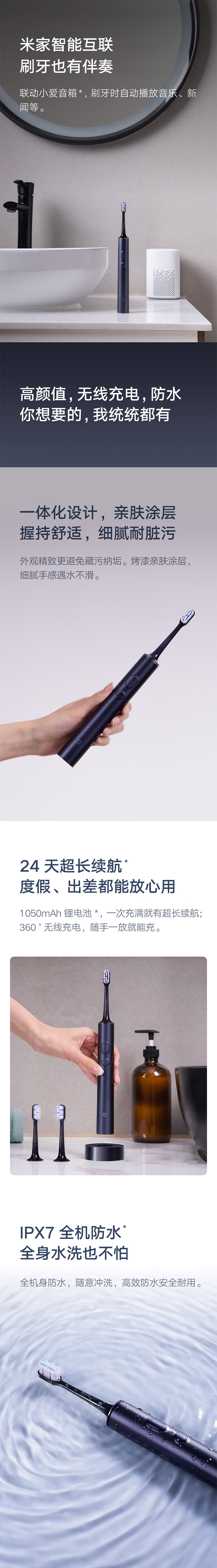 米家(MIJIA) 声波电动牙刷T700 MES604 IPX7防水等级 宝石蓝(单位:个)