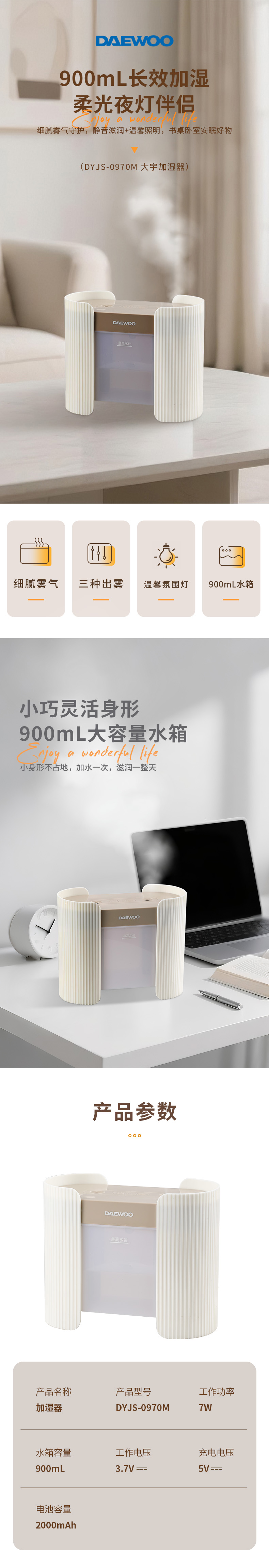 大宇(DAEWOO) 加湿器 DYJS-0970M 900mL 伯爵白(单位:台)
