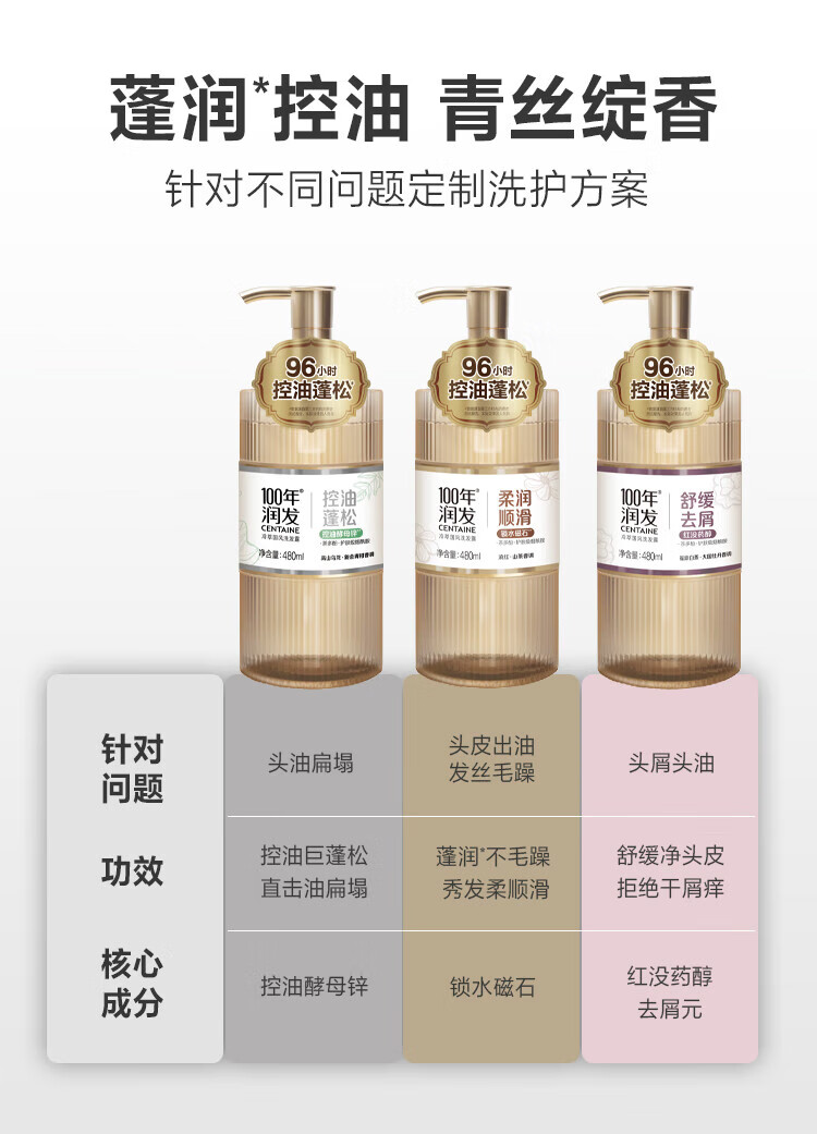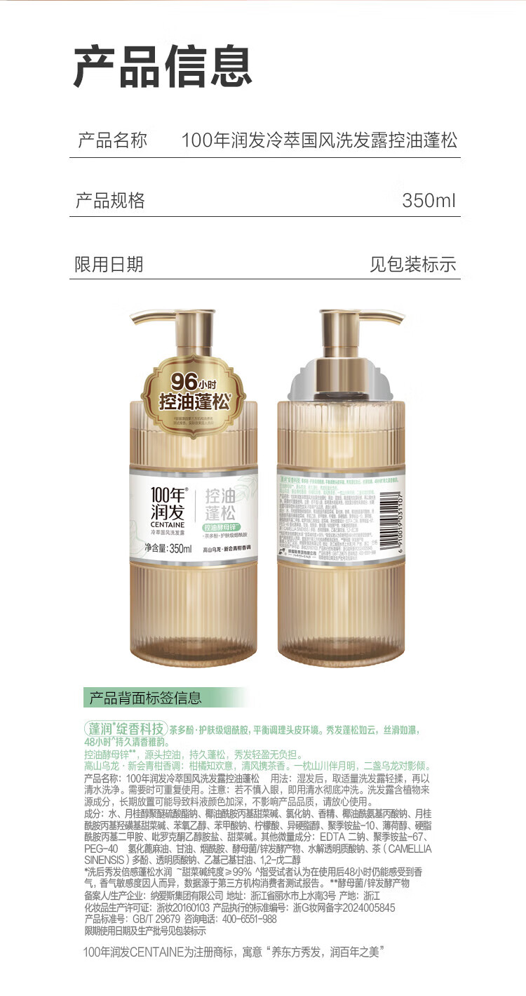 100年润发 洗发露 控油蓬松 350ml 混色(单位:瓶)