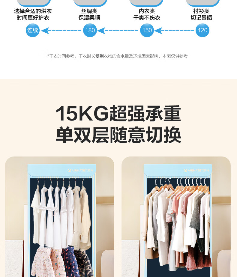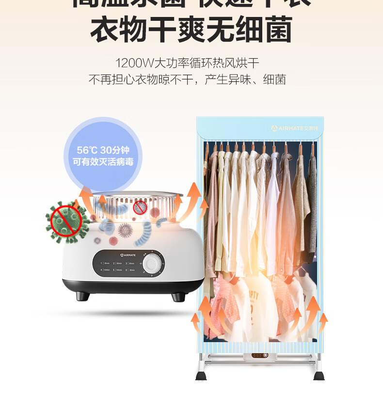 艾美特(AIRMATE) 干衣机 HG12-K2 双层大容量 470L 天蓝色(单位:台)
