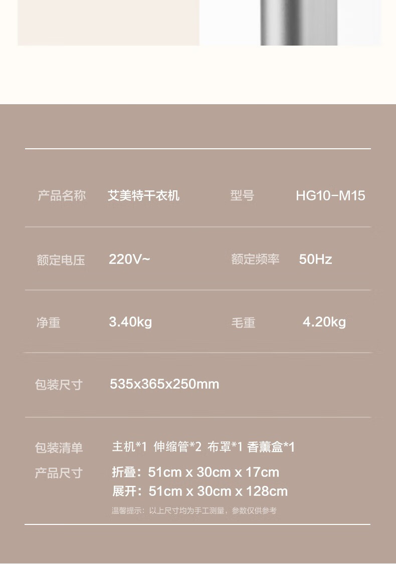 艾美特(AIRMATE) 干衣机 HG10-M15 【折叠香薰款】200L 象牙色(单位:台)