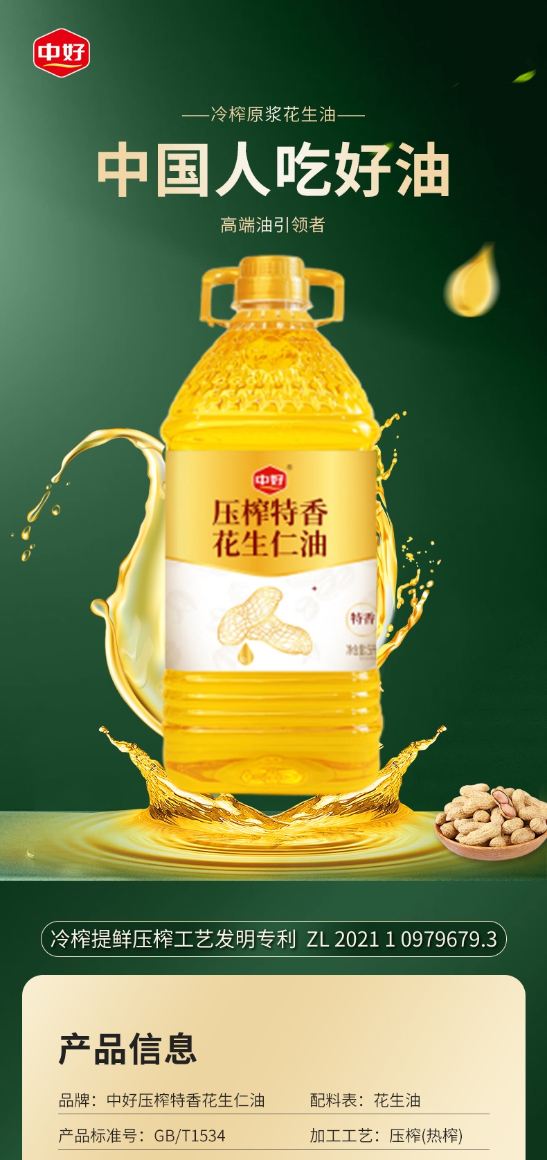 中好压榨特香花生仁油5L