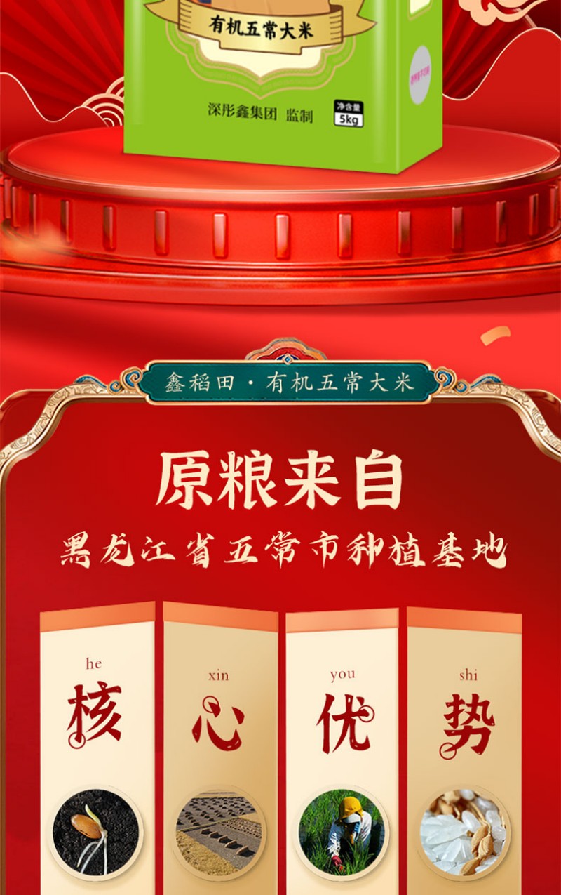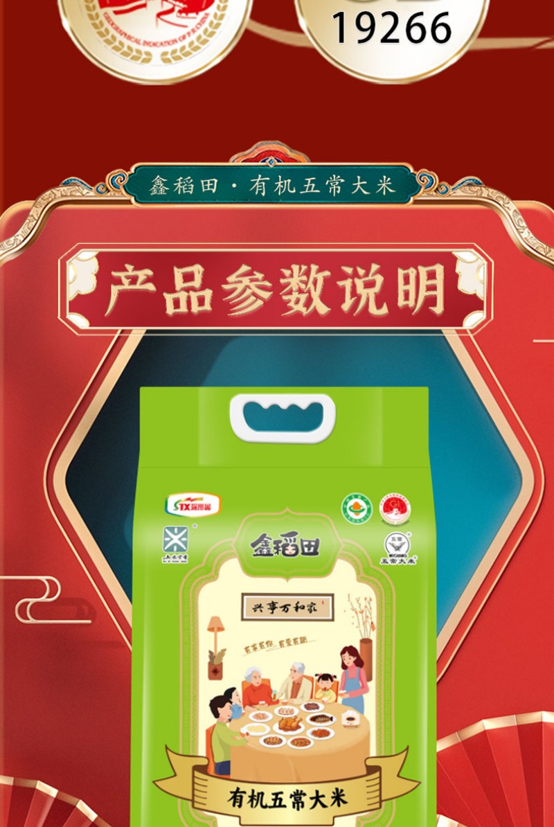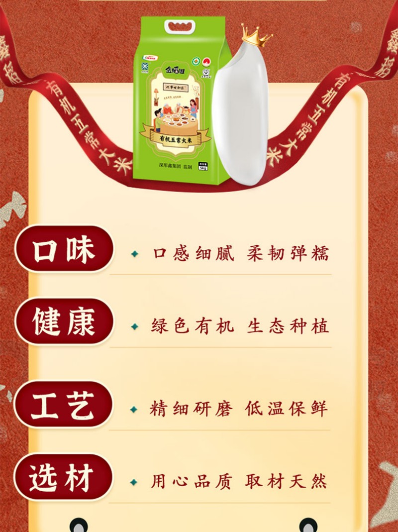 鑫稻田 有机 五常大米 5KG 绿色(单位:袋)