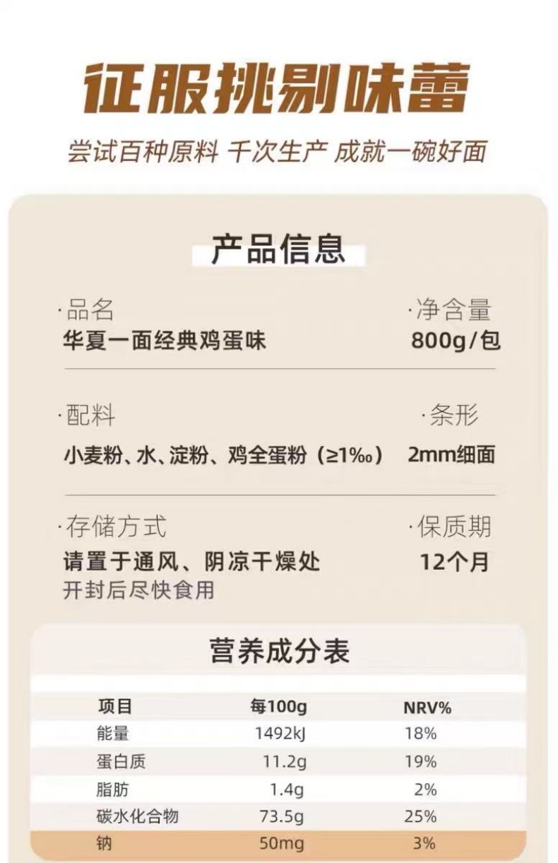 陈克明 华夏 鸡蛋面 800g*3袋 红色(单位:份)