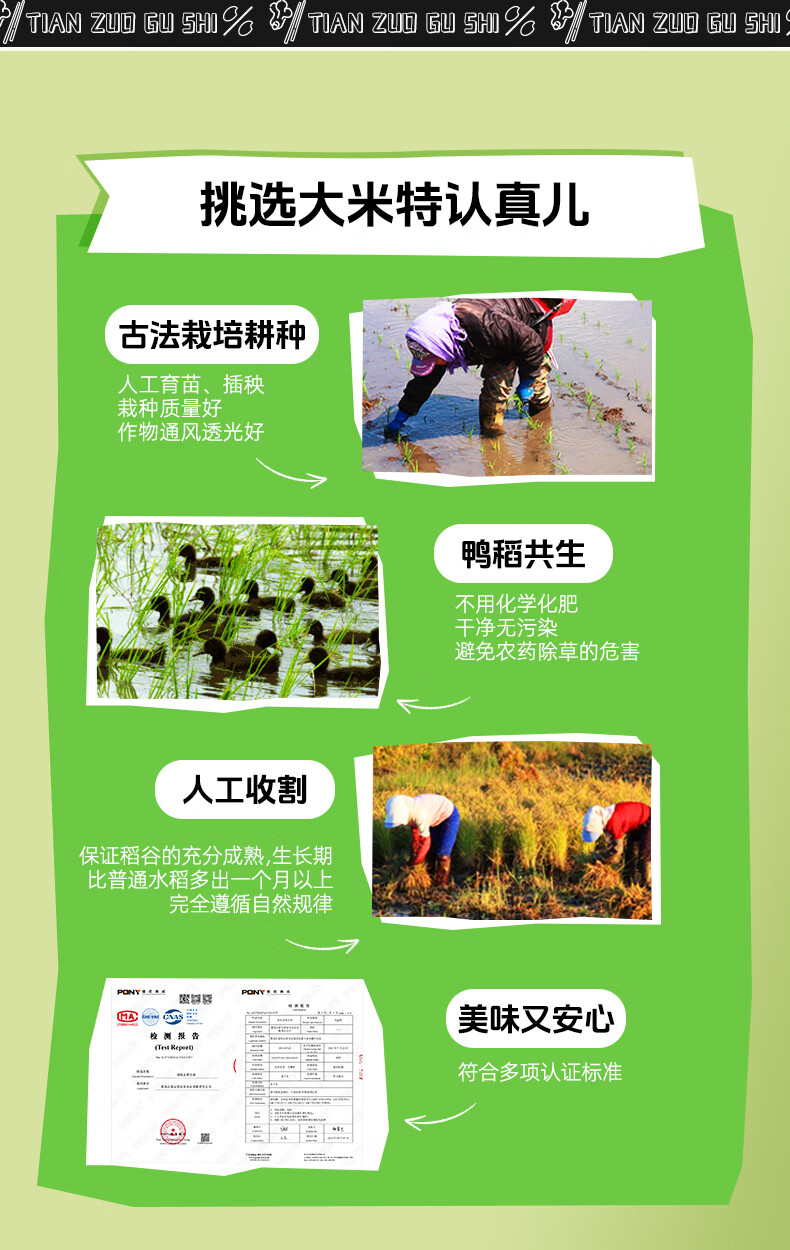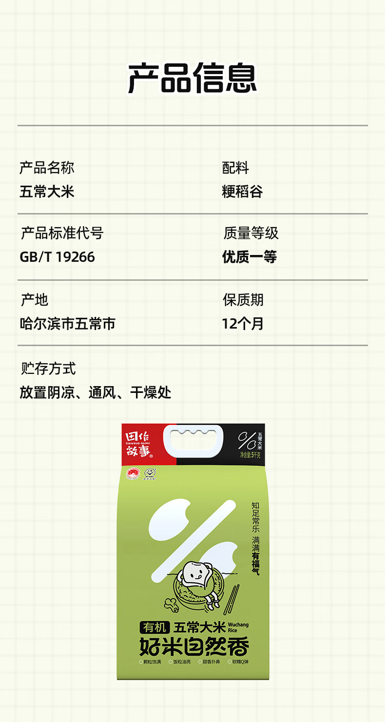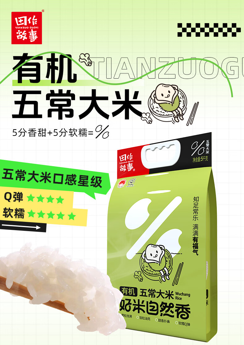 田作故事(TIANZUOGUSHI) 鸭稻共生 有机五常大米 5kg 清新色(单位:袋)