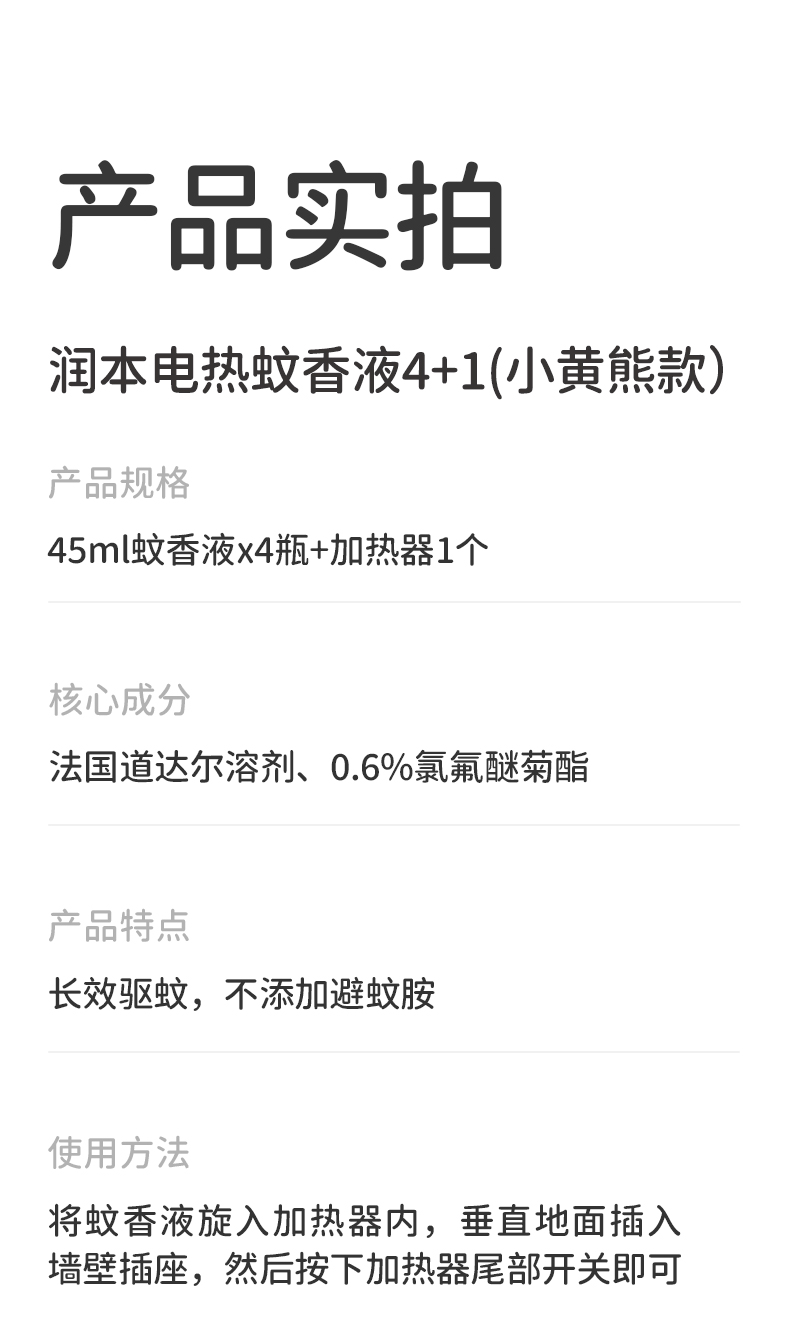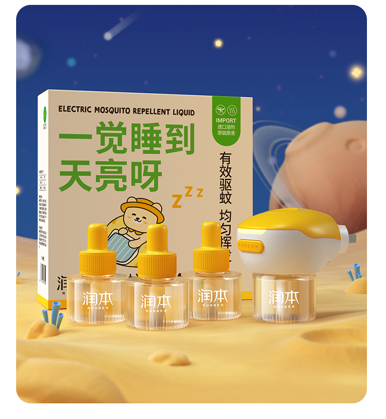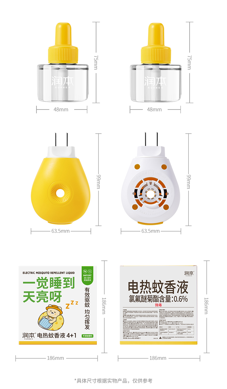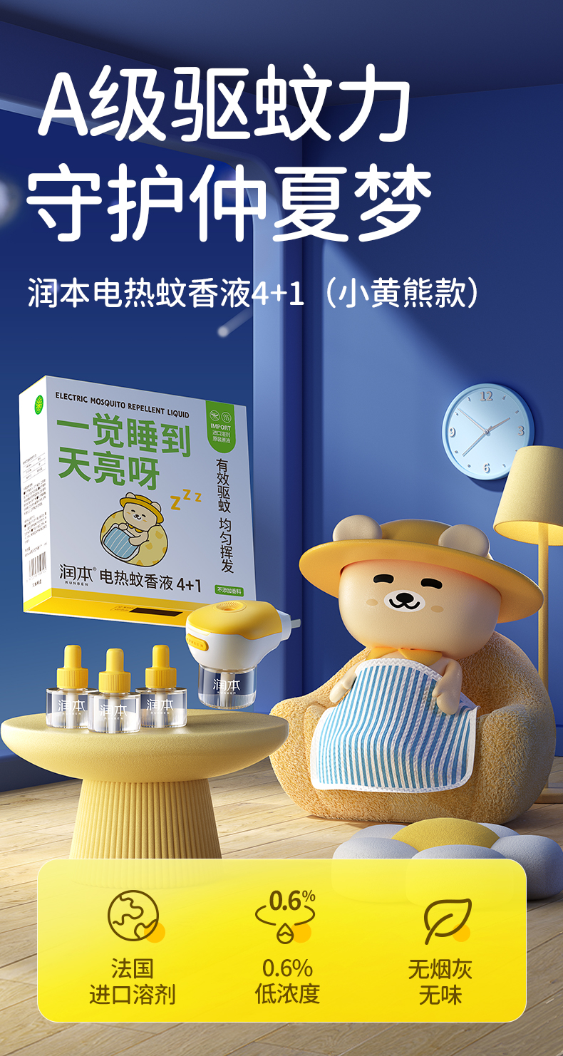 润本电热蚊香液(0.6%)45ml(小黄熊)4+1(礼盒装)(DWY125Q12-B/RUNBEN-2)盒 黄色