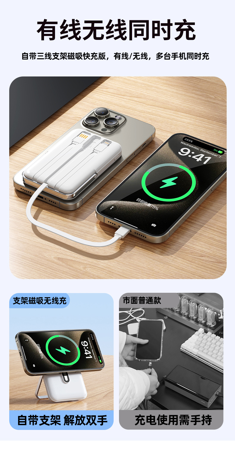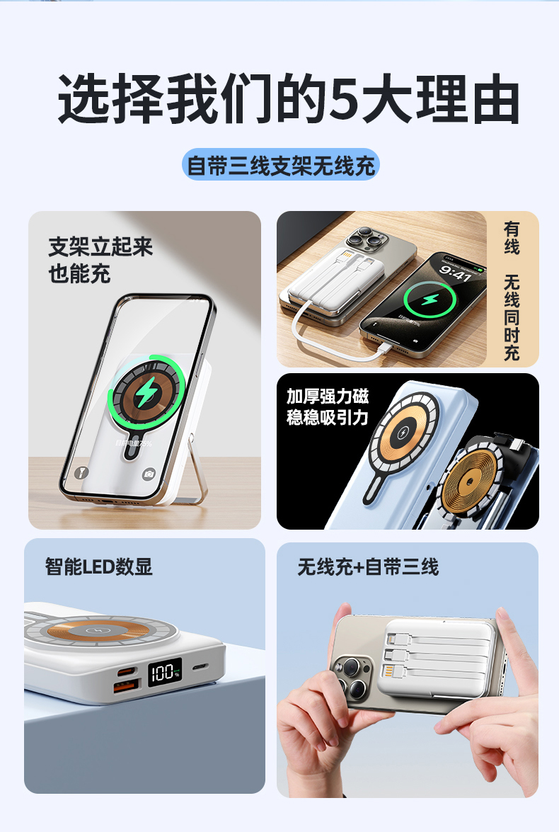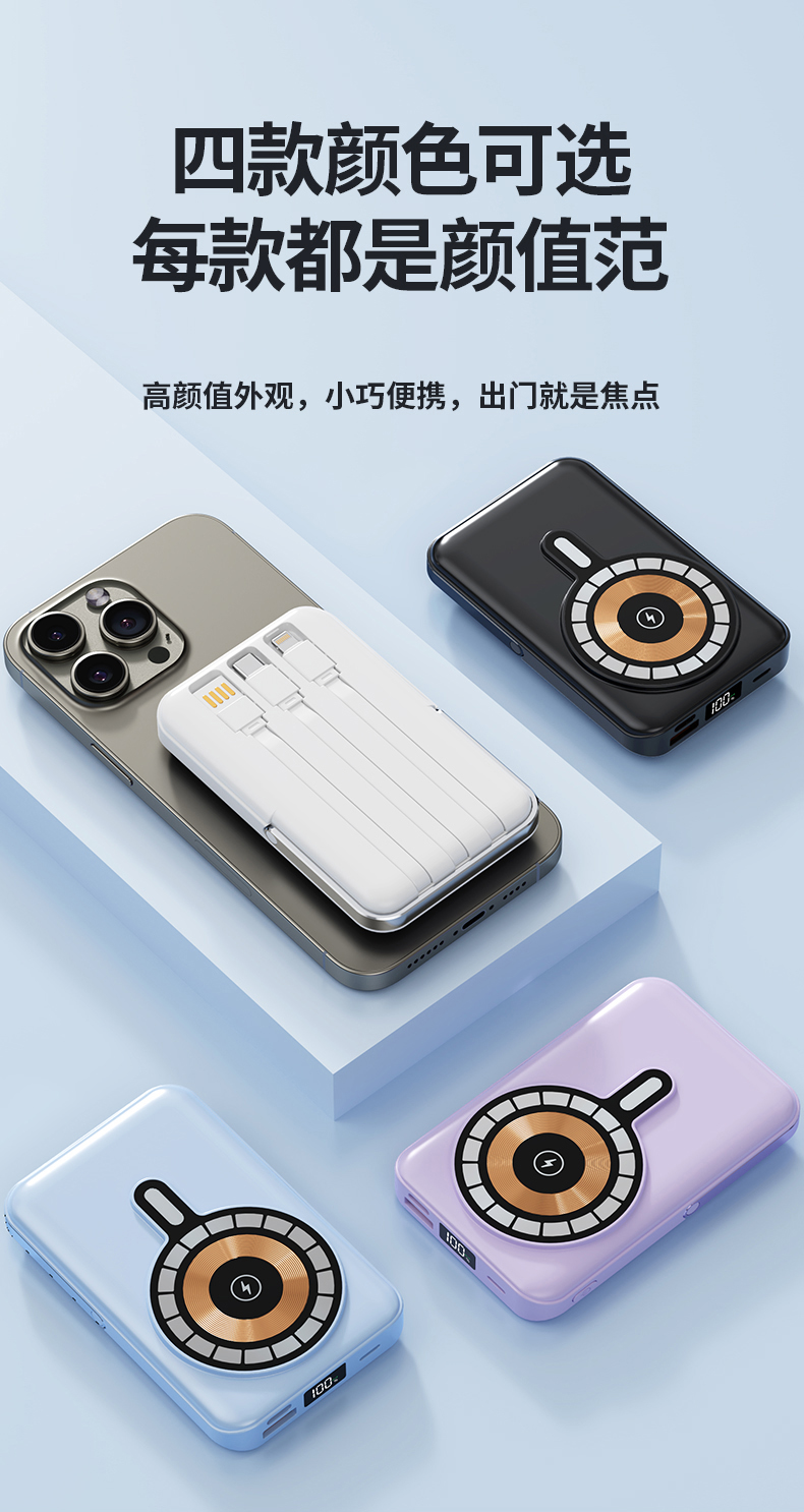 乐默(LOOMOO) 自带三线磁吸快充移动电源 LPB-259 产品尺寸: 113*71.5*22.6mm 蓝色(单位:个)