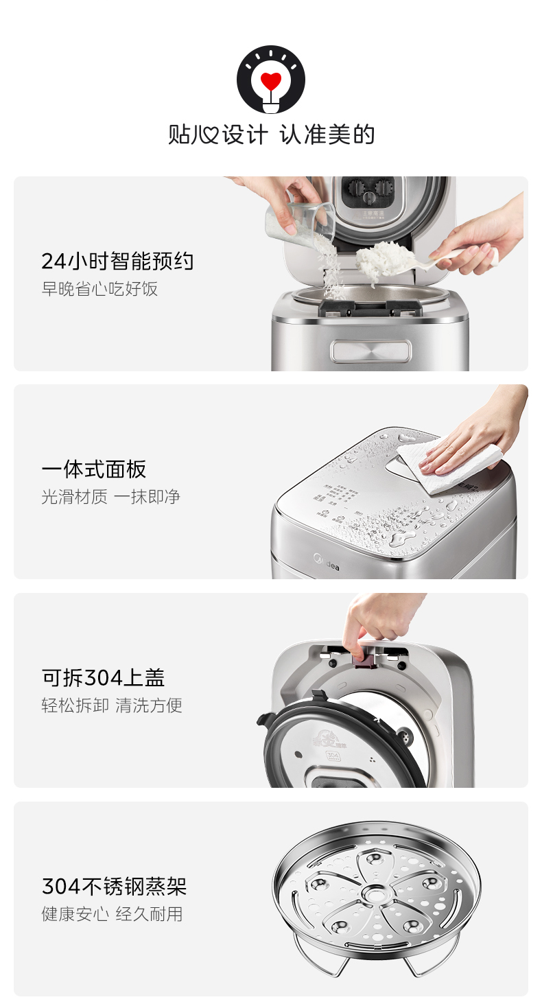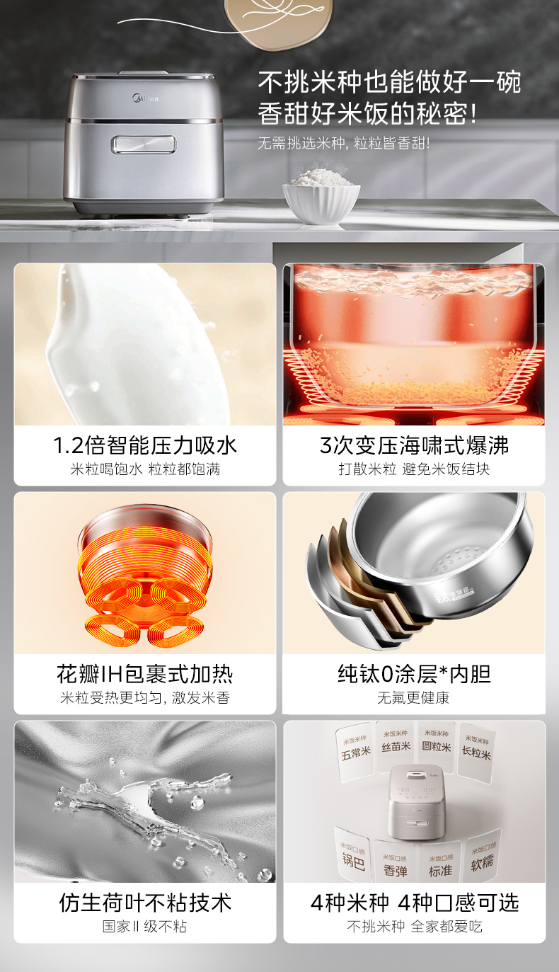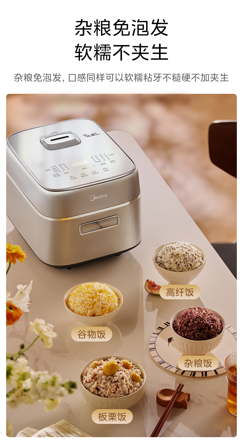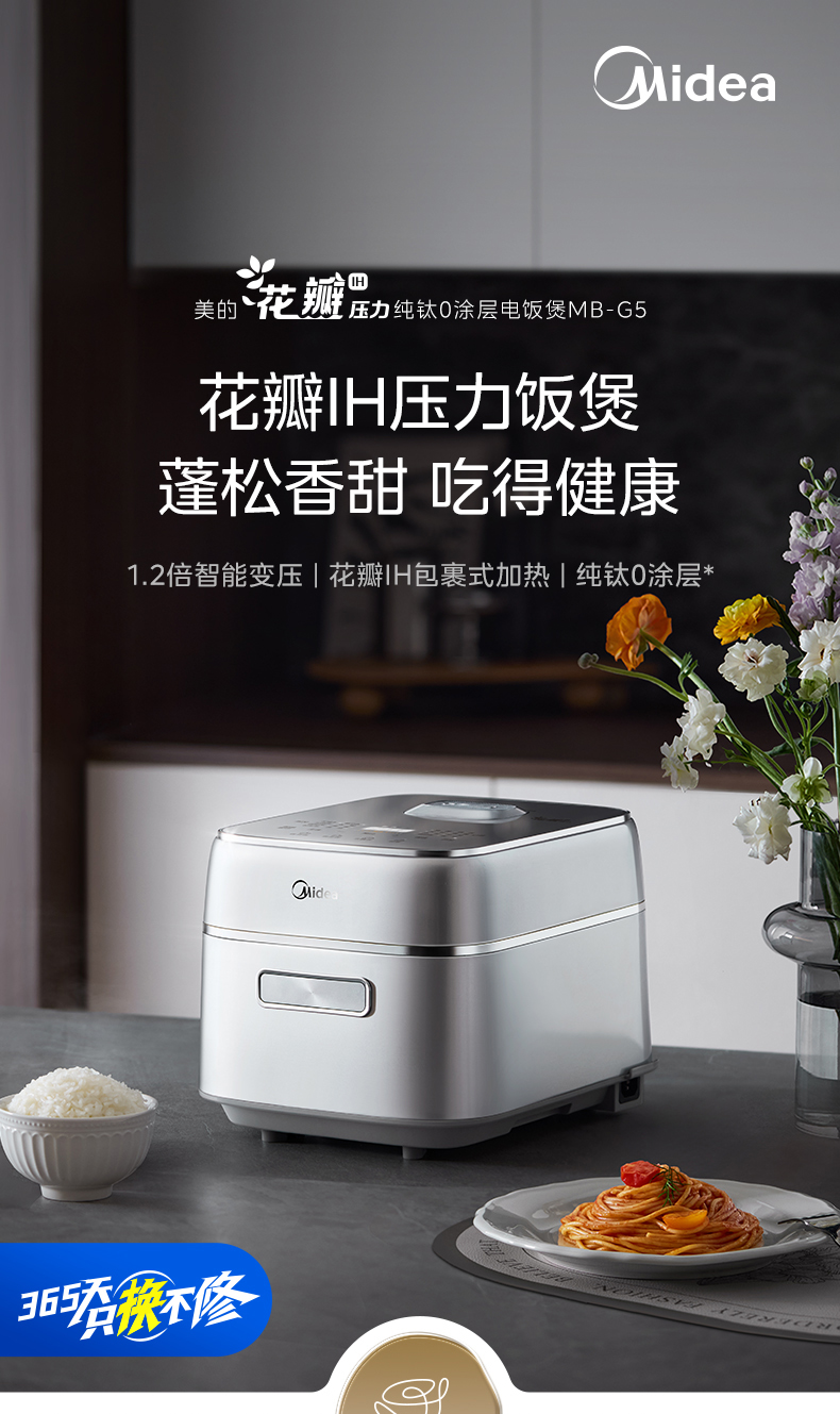 美的(Midea) 花瓣IH加热多功能电饭锅纯钛0涂层电电饭煲 MB-G5 3L 银色(单位:台)