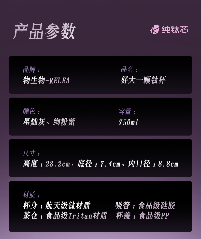 物生物(RELEA) 好大一颗钛杯 JV012533-0750-US00 750ML 星灿灰(单位:个)