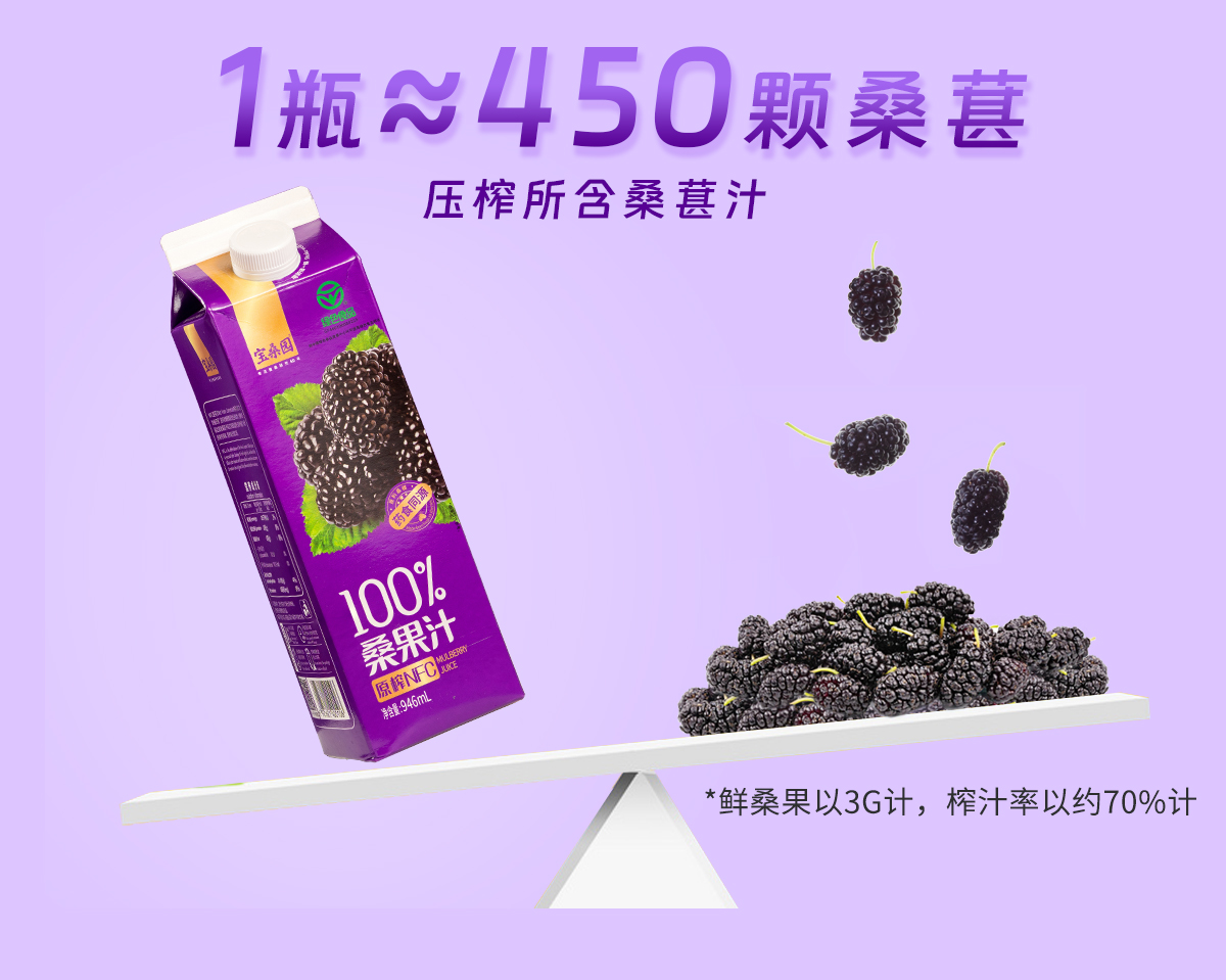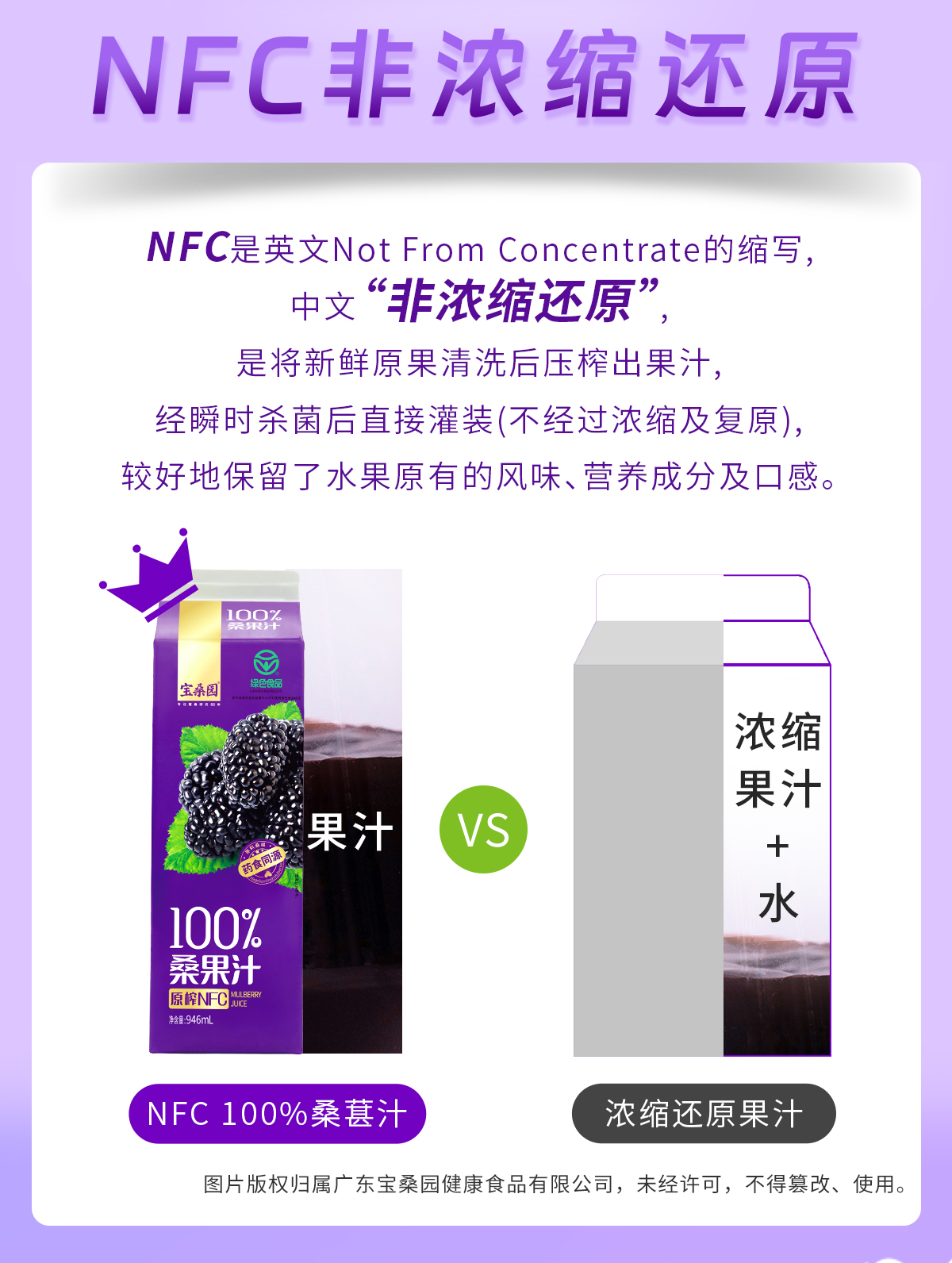 宝桑园(bosun) NFC桑葚汁 聚会分享装 100%桑果汁 946ml*2盒 紫色(单位:组)