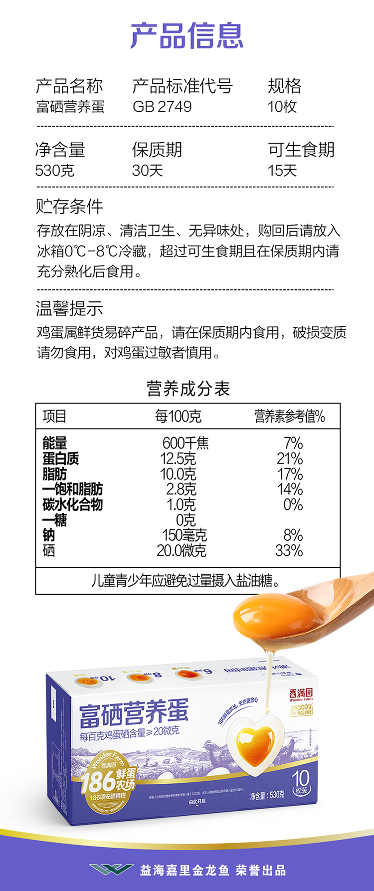 香满园 富硒营养蛋 可生食 10枚装 白色(单位:盒)