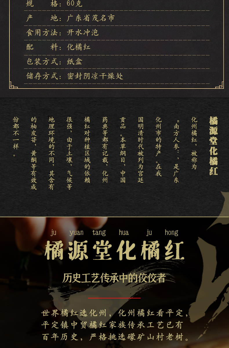 橘源堂 化州橘红二十五年陈片 国家地理标志产品 30包x2克*2盒 香槟黄(单位:盒)