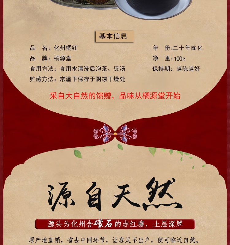 橘源堂 化州橘红二十年陈片 国家地理标志产品 100g/罐*2罐 白色(单位:组)