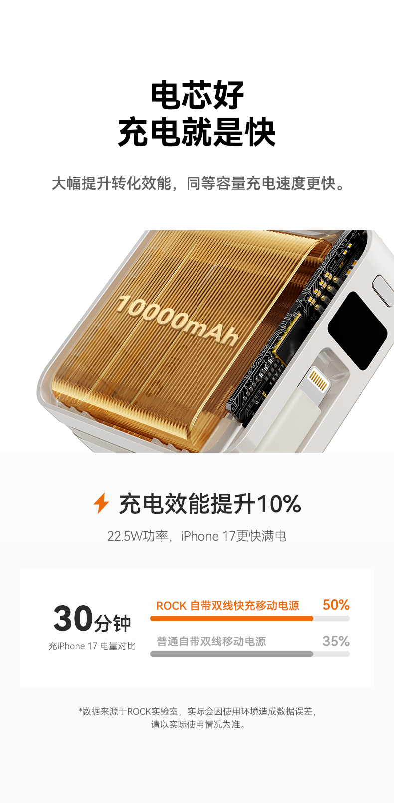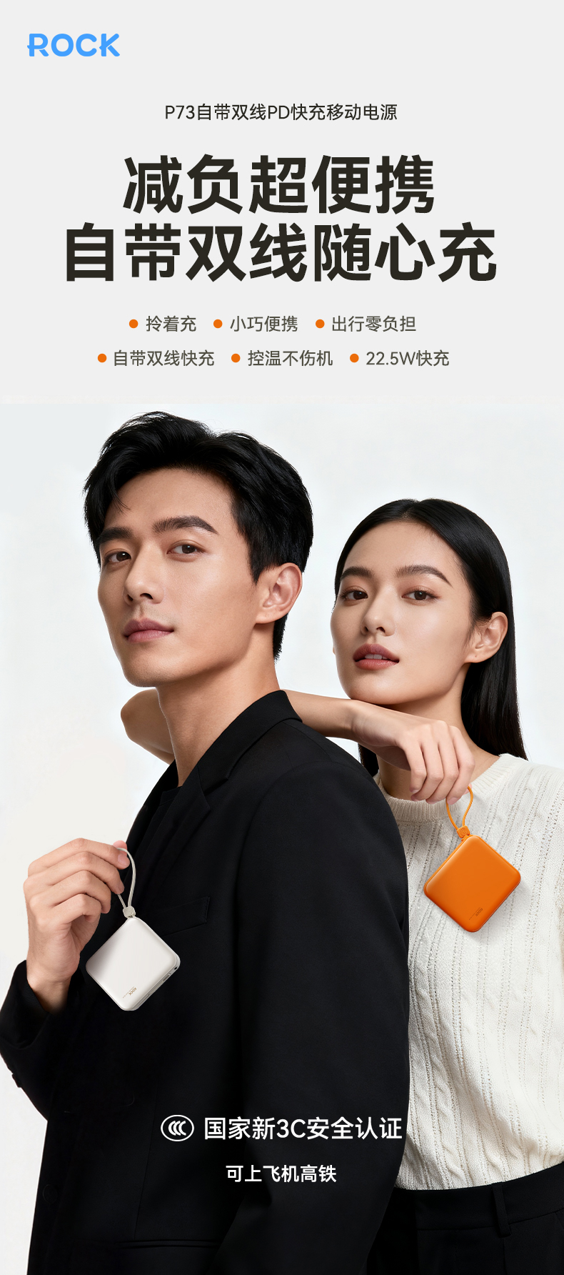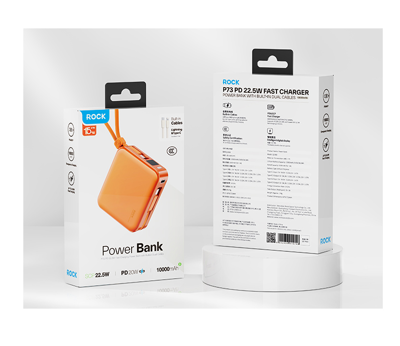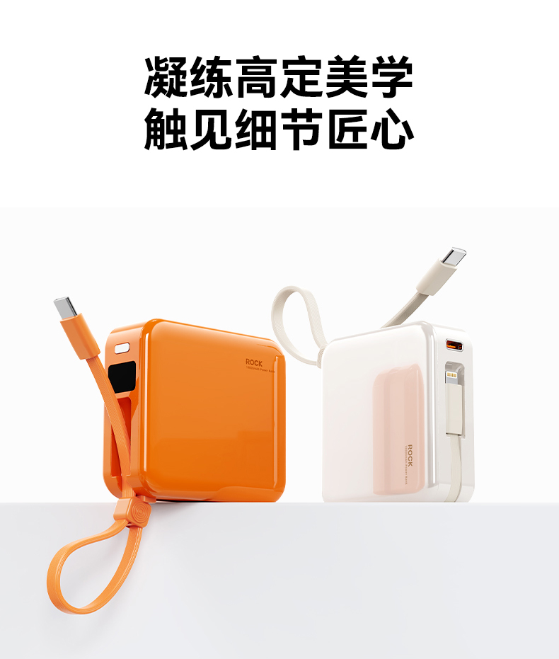 ROCK P73 自带双线PD 22.5W快充移动电源 Q1068 10000mAh 米白色(单位:个)