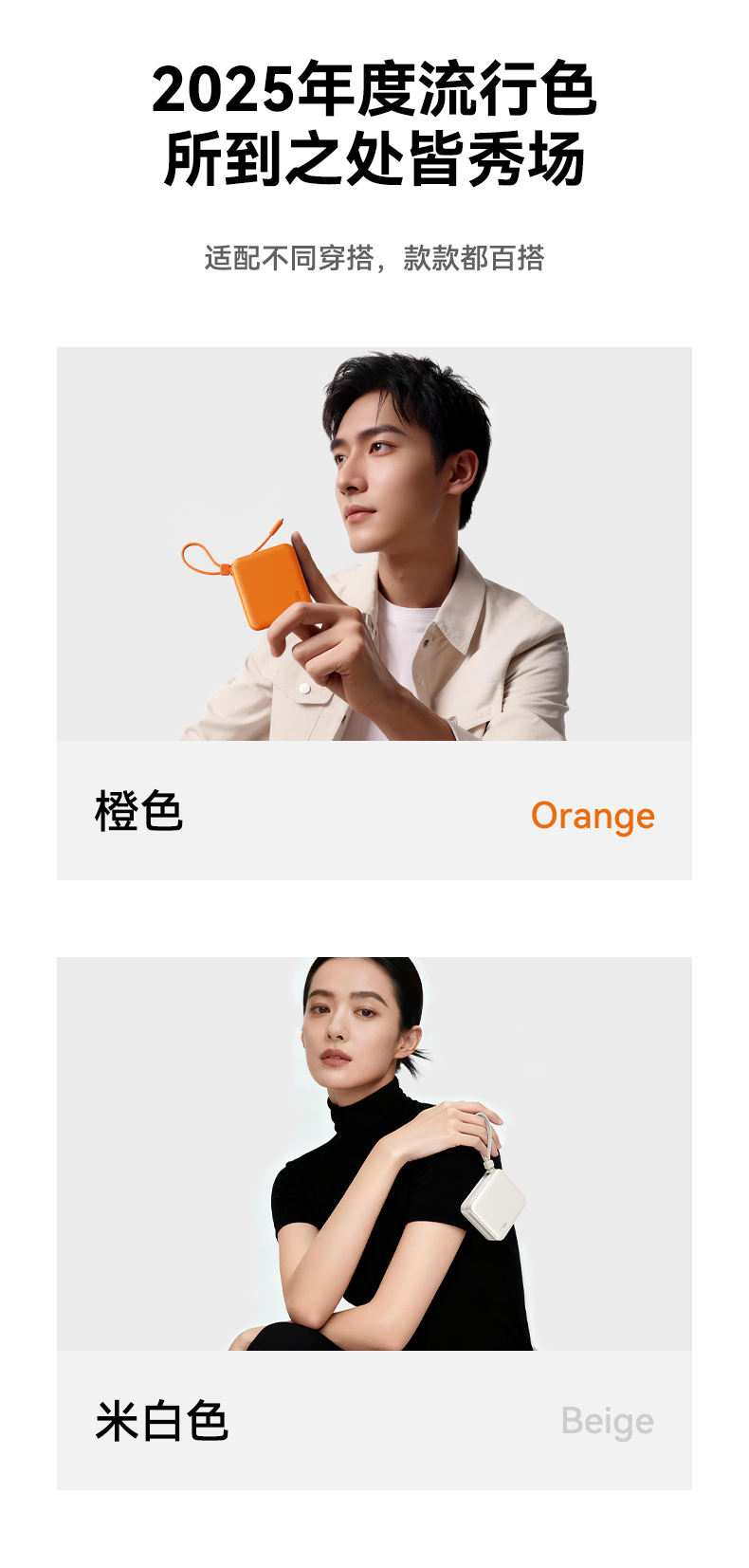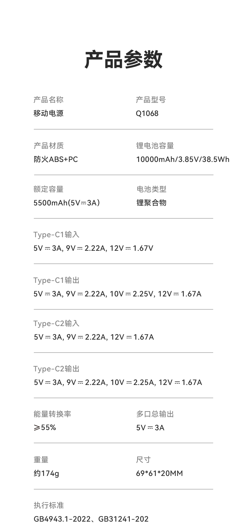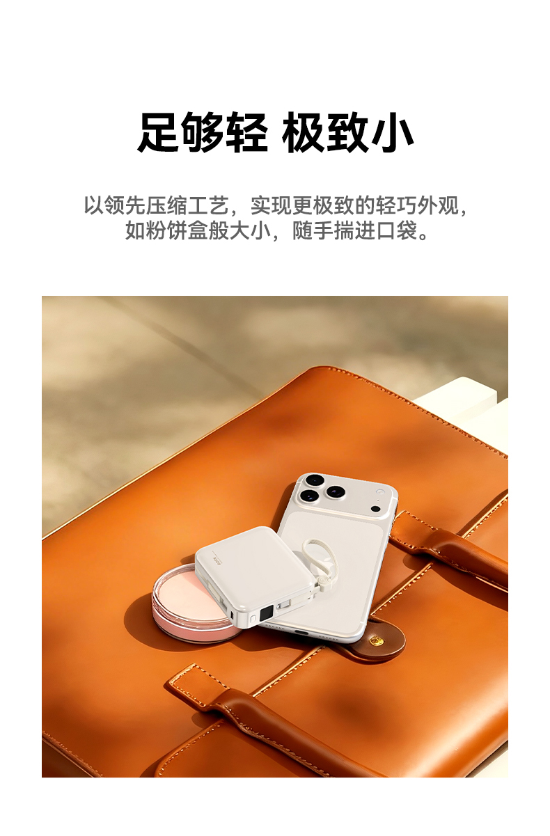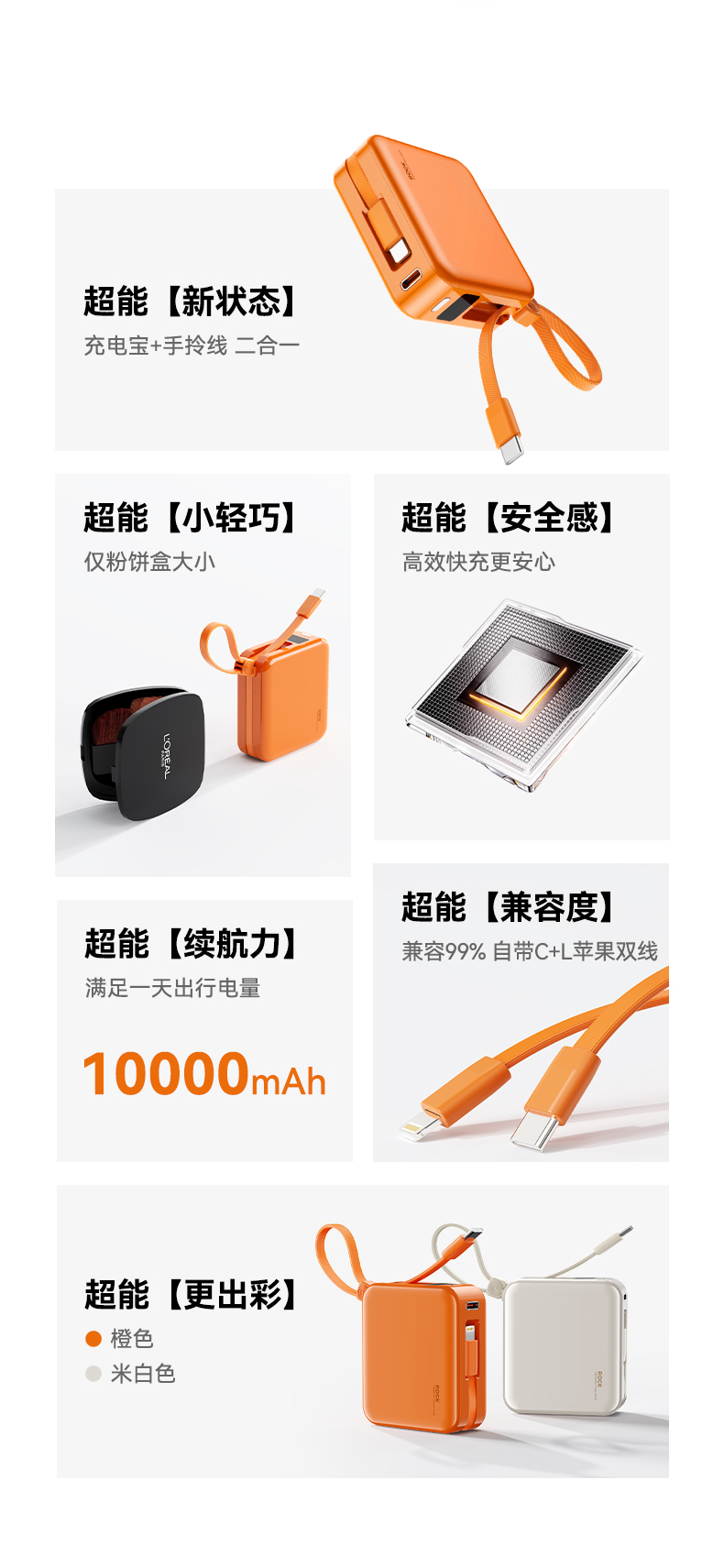 ROCK P73 自带双线PD 22.5W快充移动电源 Q1068 10000mAh 米白色(单位:个)