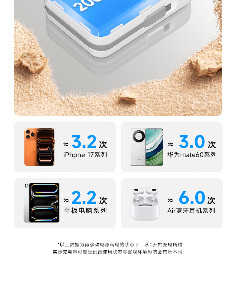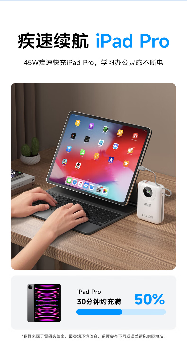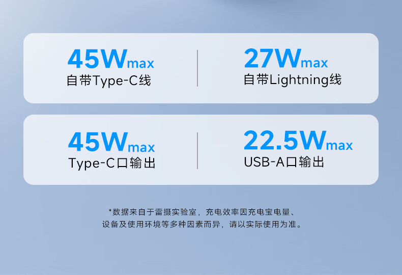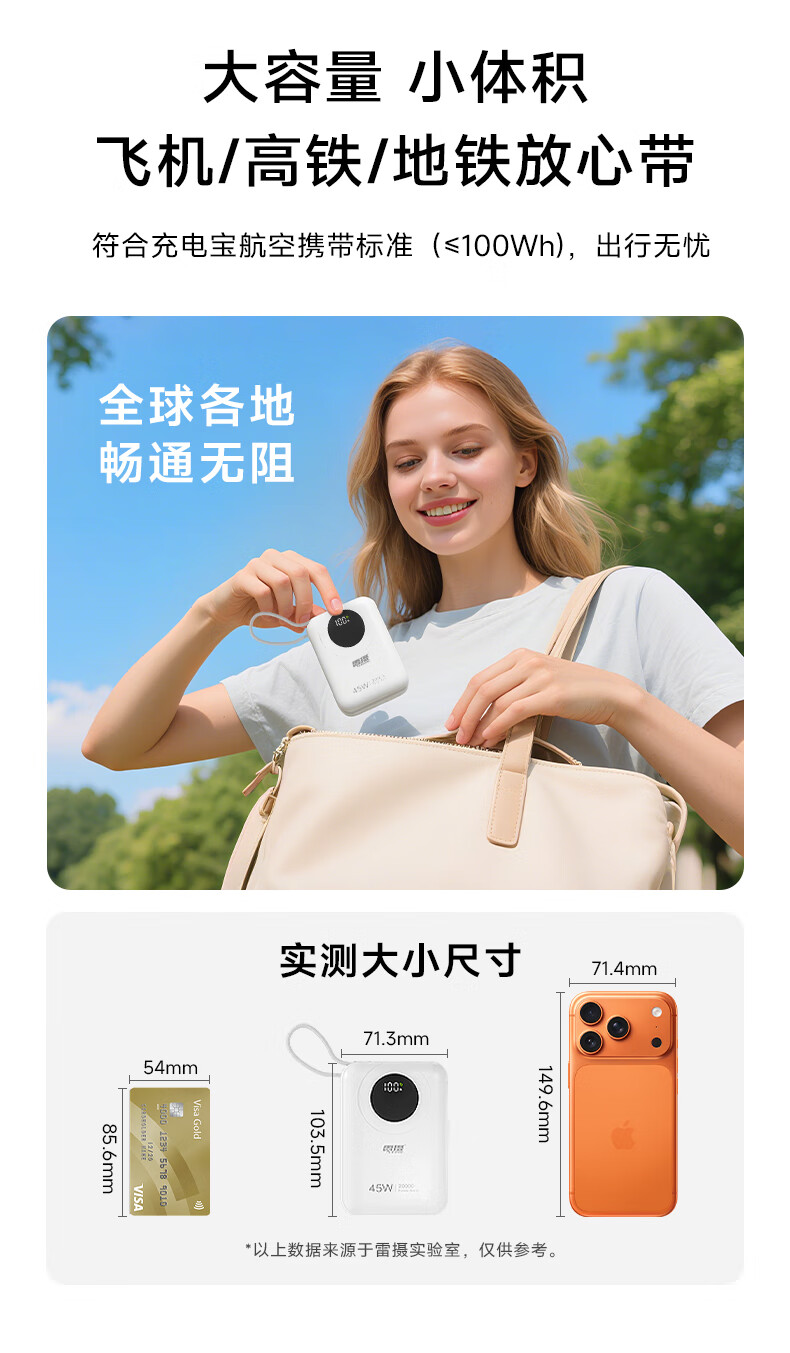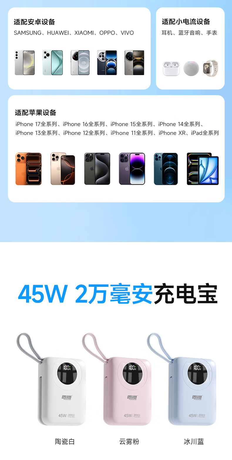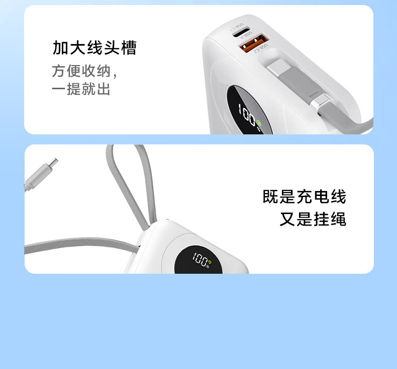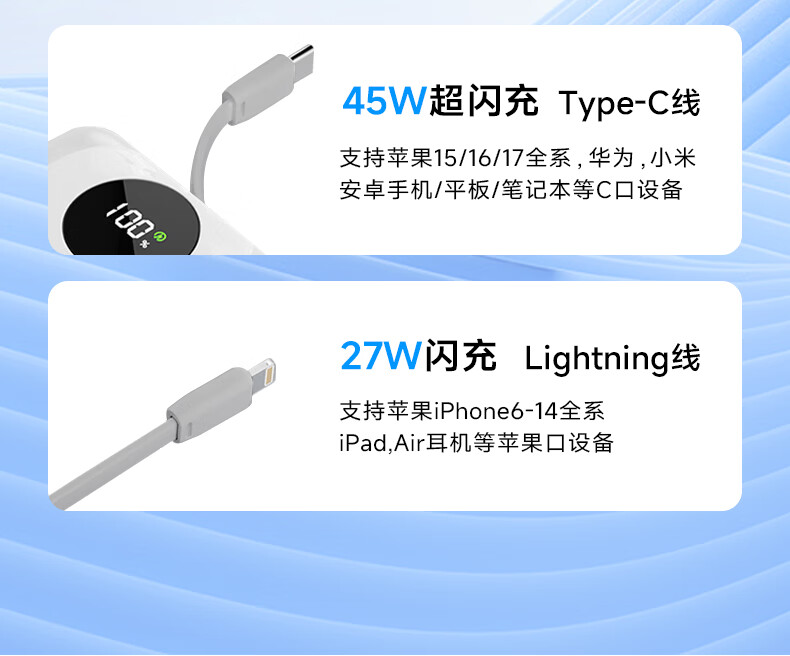 雷摄(LEISE) 移动电源 45W充电宝自带线 移动电源 MH803 20000毫安 白色(单位:个)
