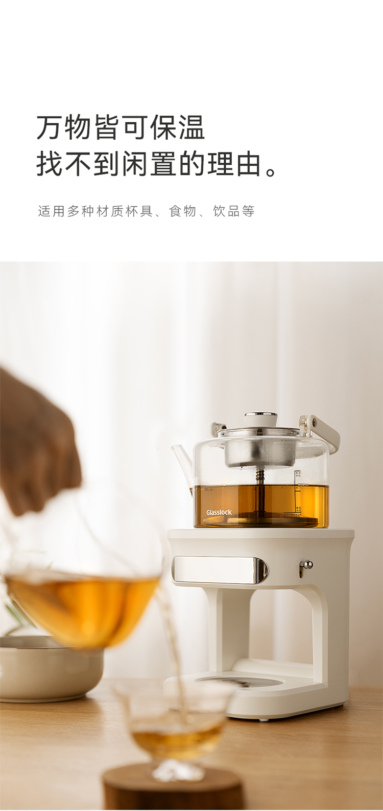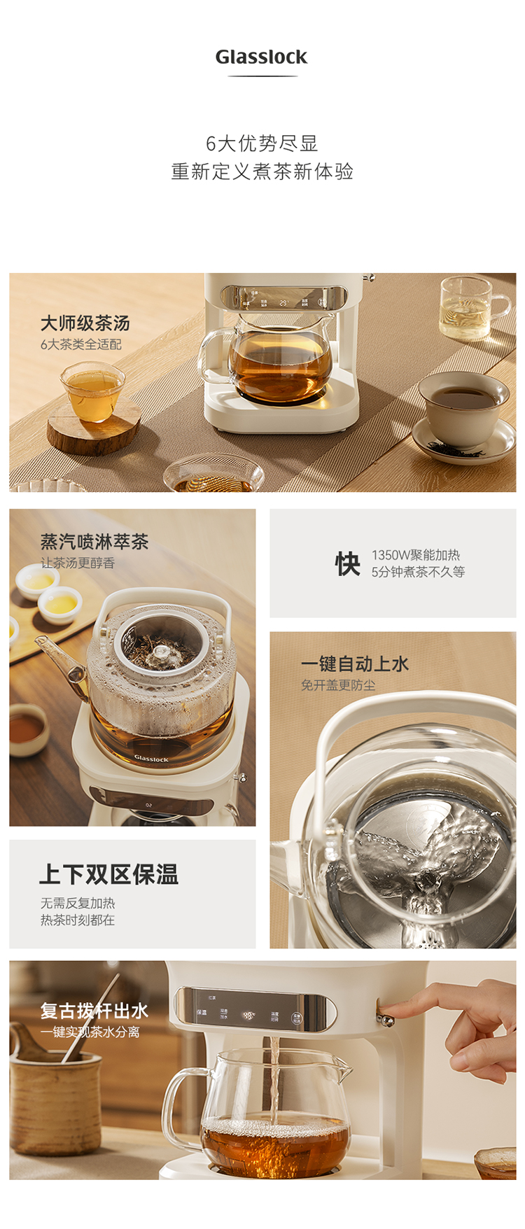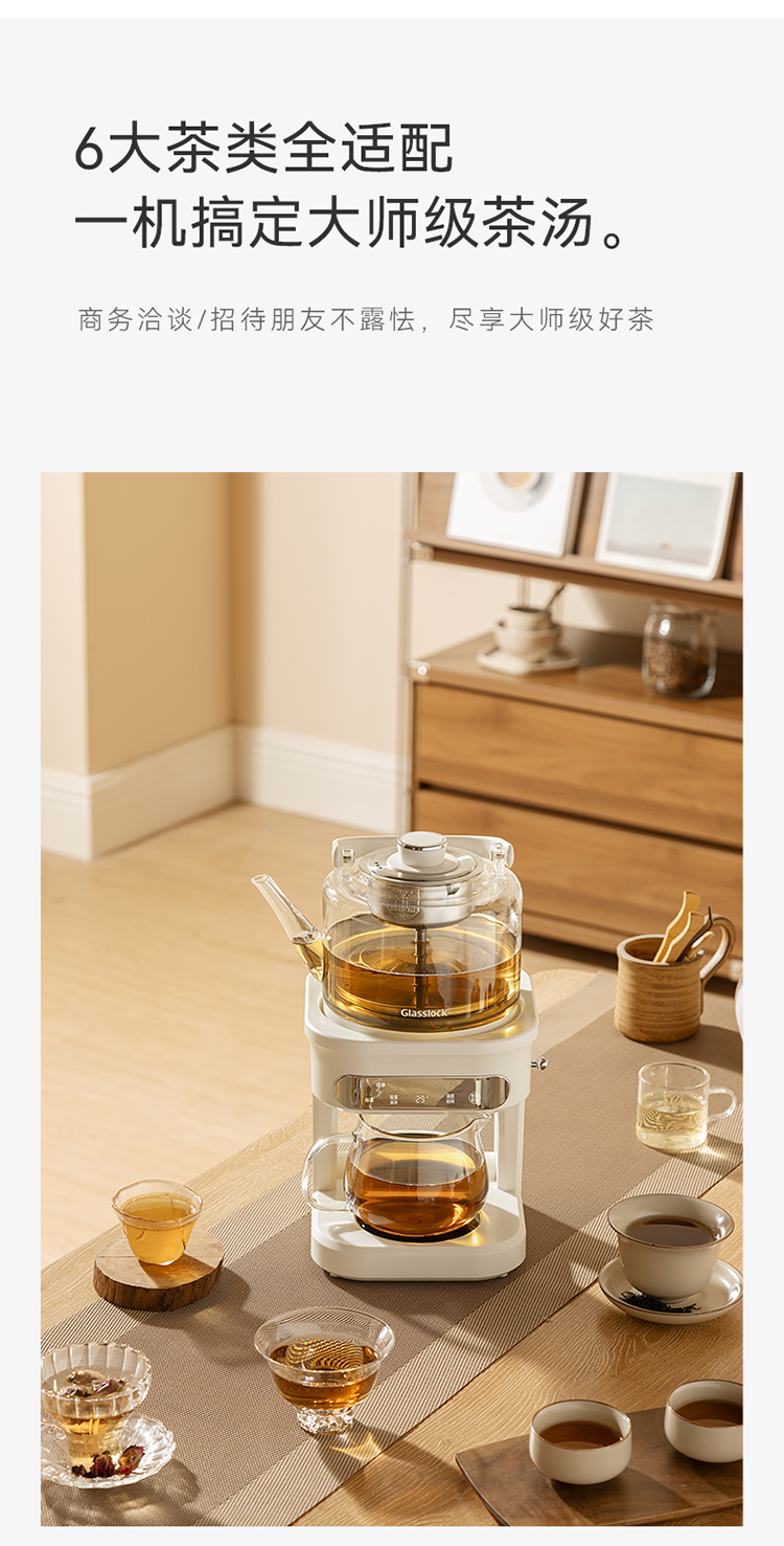 GLASSLOCK 喷淋煮茶器 自动上水款 GE-TE14BMB 1L 白色(单位:台)