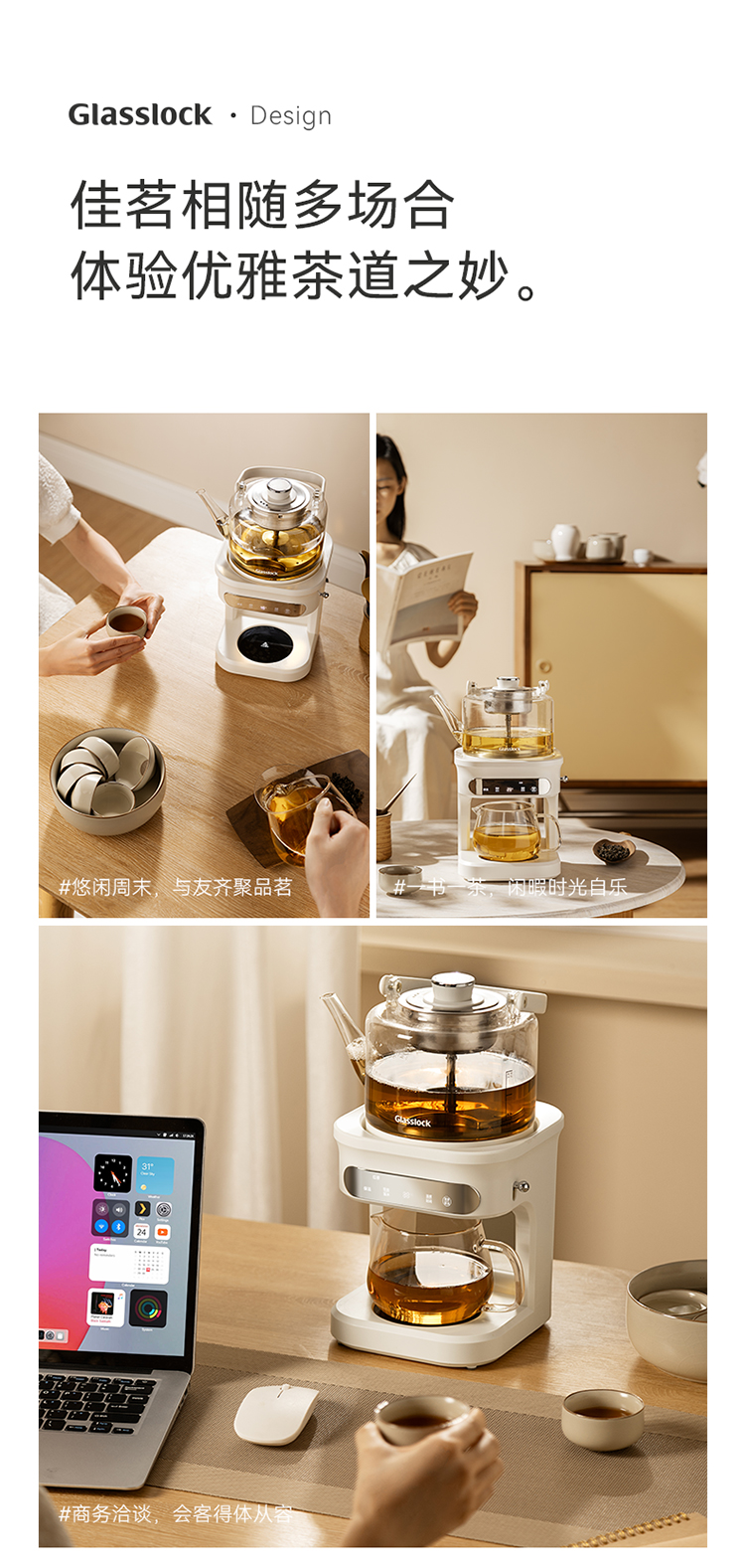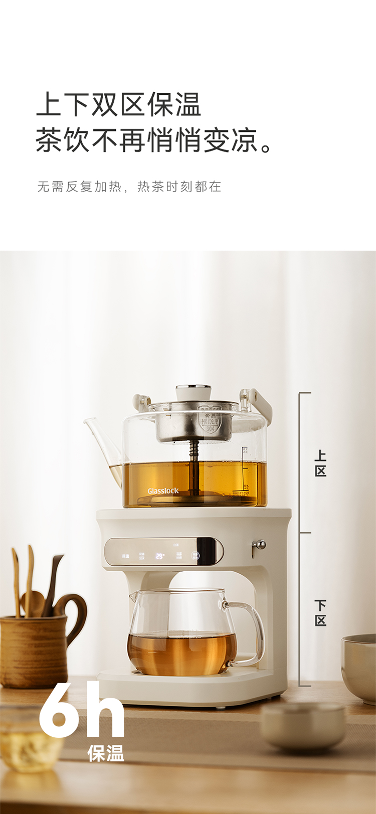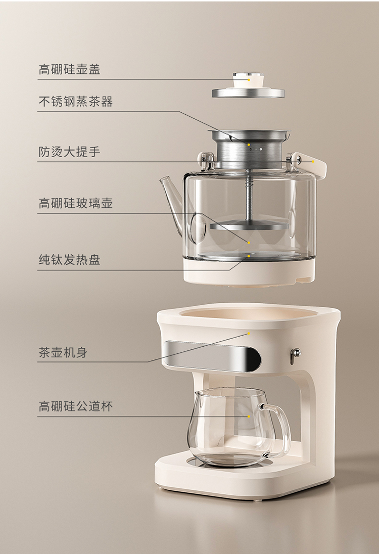 GLASSLOCK 喷淋煮茶器 自动上水款 GE-TE14BMB 1L 白色(单位:台)