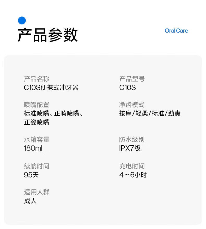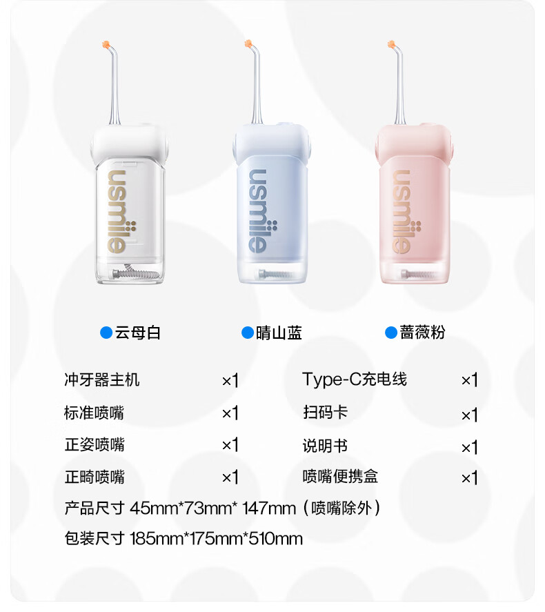 usmile 伸缩便携式冲牙器 C10S 水箱容量180ml 云母白(单位:套)