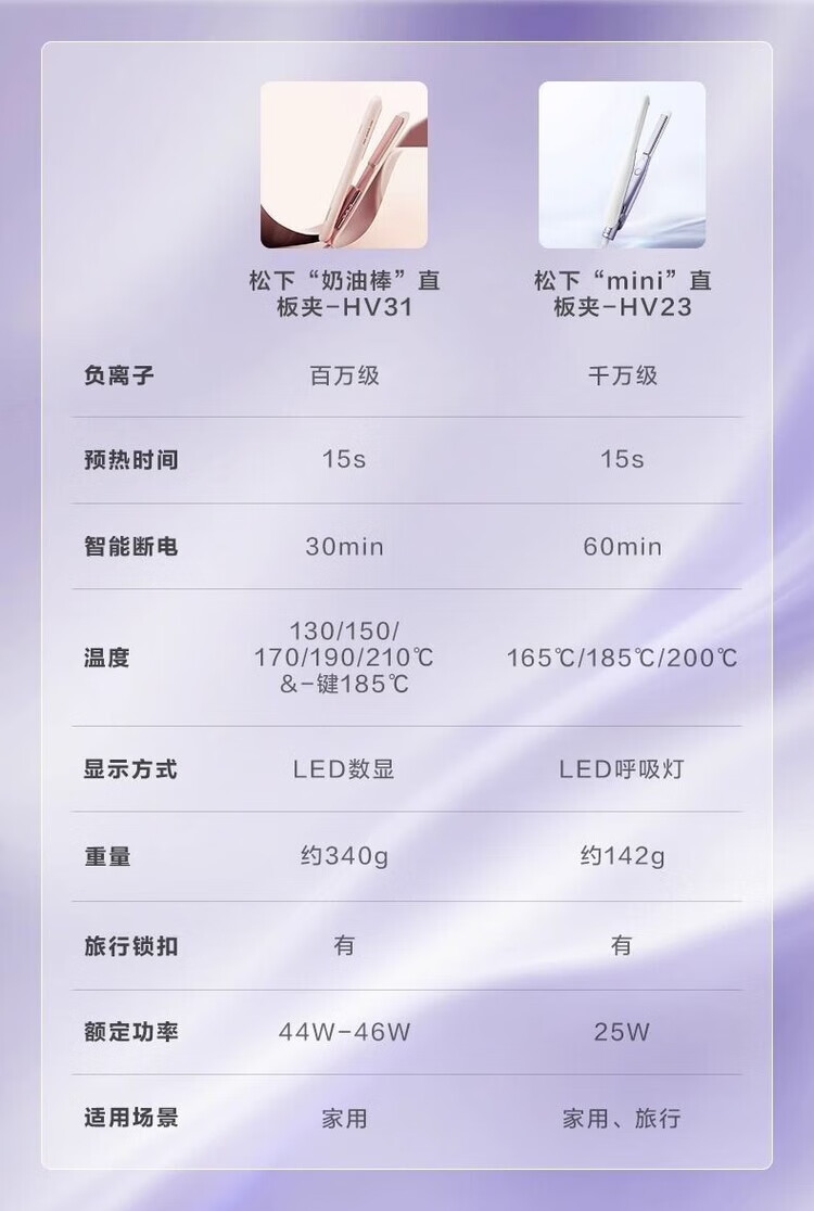 松下(Panasonic) 负离子直板夹卷棒(卷/直两用) EH-HV23 25W 紫色(单位:台)
