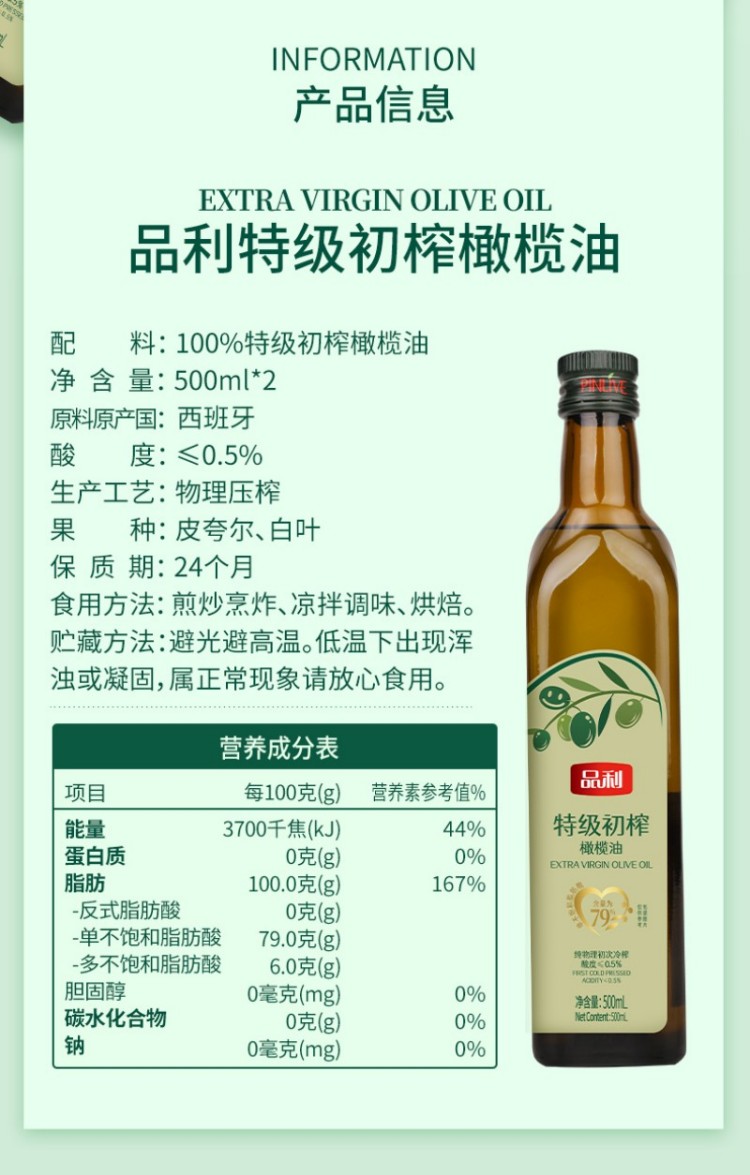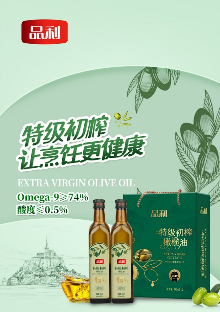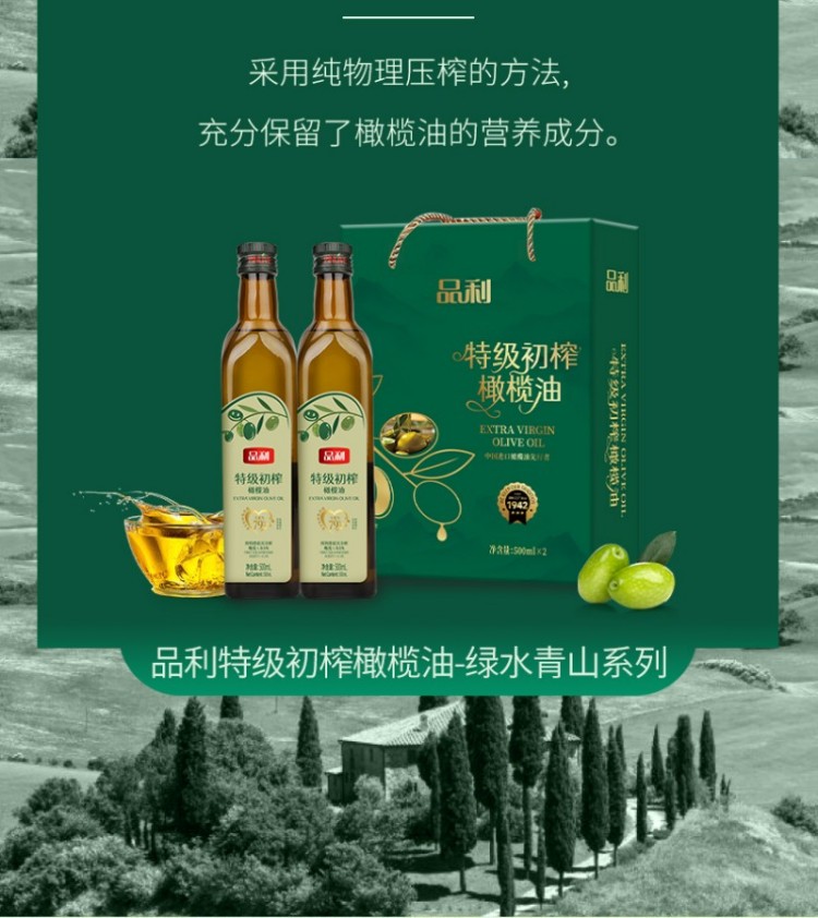 品利(MUELOLIVA) 特级初榨橄榄油 绿水青山 500mlx2 绿色(单位:盒)
