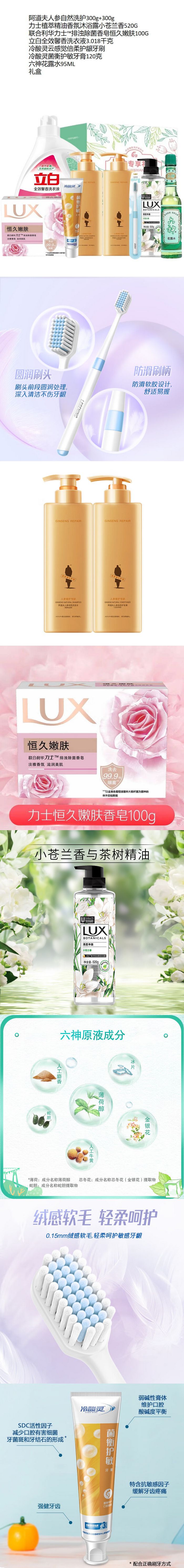 阿道夫(ADOLPH) 力士立白冷酸灵六神沐浴香皂洗衣液牙膏花露水 SF缤纷悠彩套餐C 4.358kg+1支+95ml 拿铁色(单位:组)