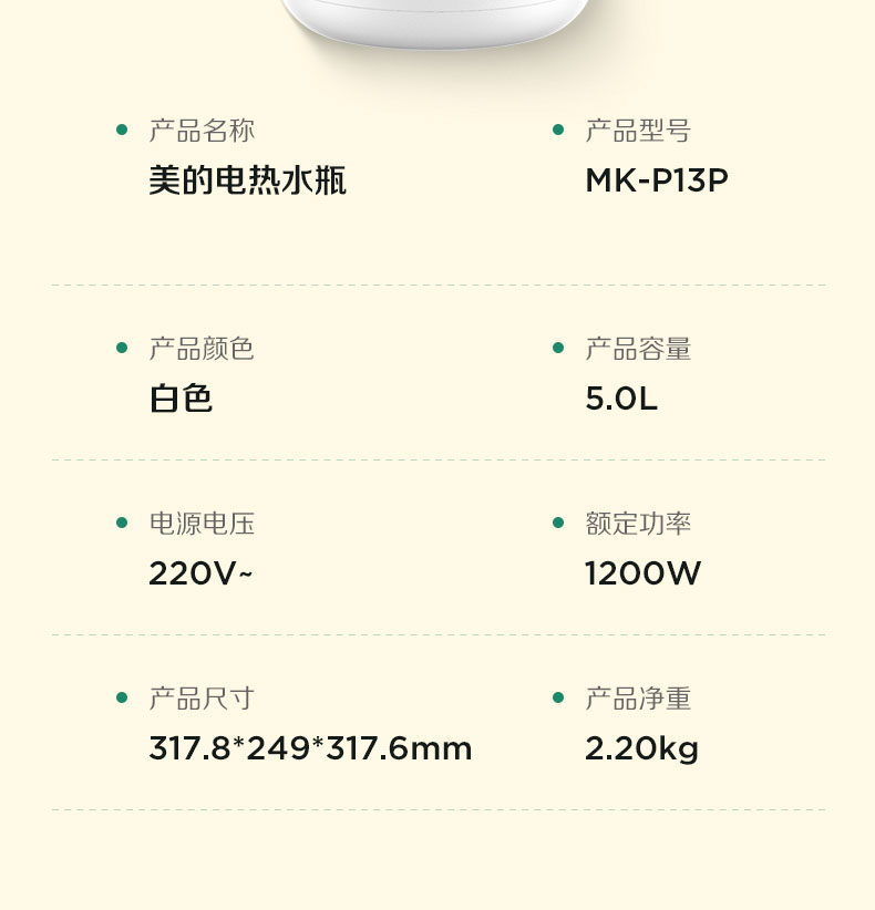 美的(Midea) 电热水瓶 MK-P13P 容量5L 白色(单位: 台)