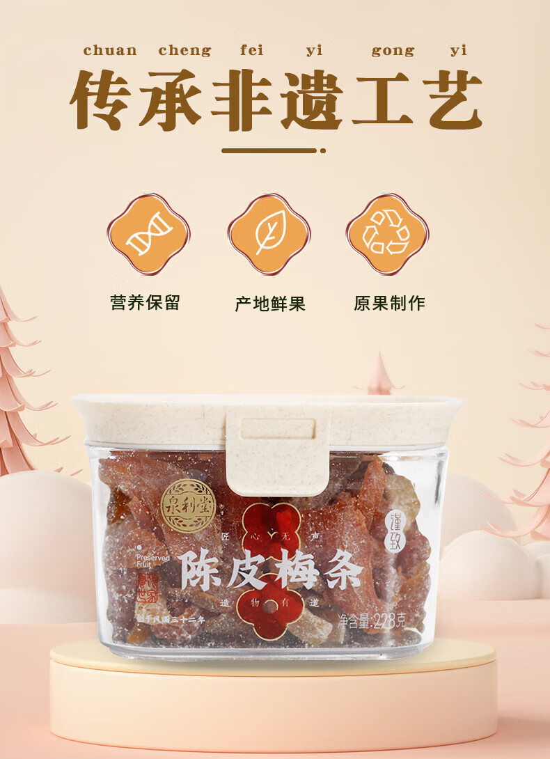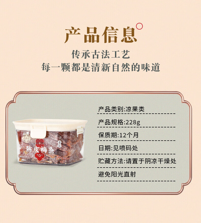 泉利堂 陈皮梅条 果干蜜饯 228g/ 白色(单位:罐)