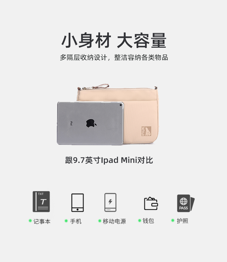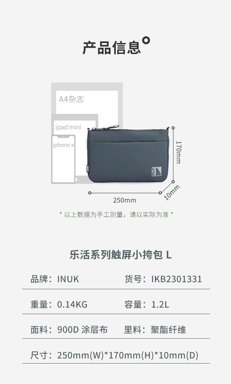 Inuk 触屏小挎包 1.2L IKB2301323 尺寸:250*170*10mm 奶茶色(单位:个)