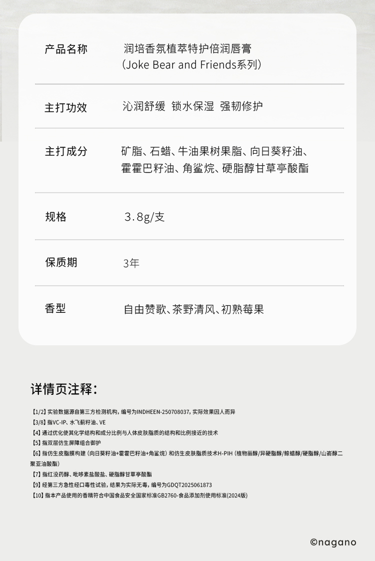 ROOPY 润培 自嘲熊系列 香氛植萃特护倍润唇膏草莓味 初熟莓果 3.8g 粉色(单位:支)