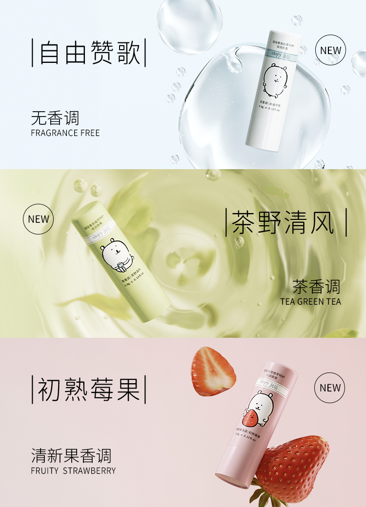 ROOPY 润培 自嘲熊系列 香氛植萃特护倍润唇膏茶香调 茶野清风 3.8g 绿色(单位:支)