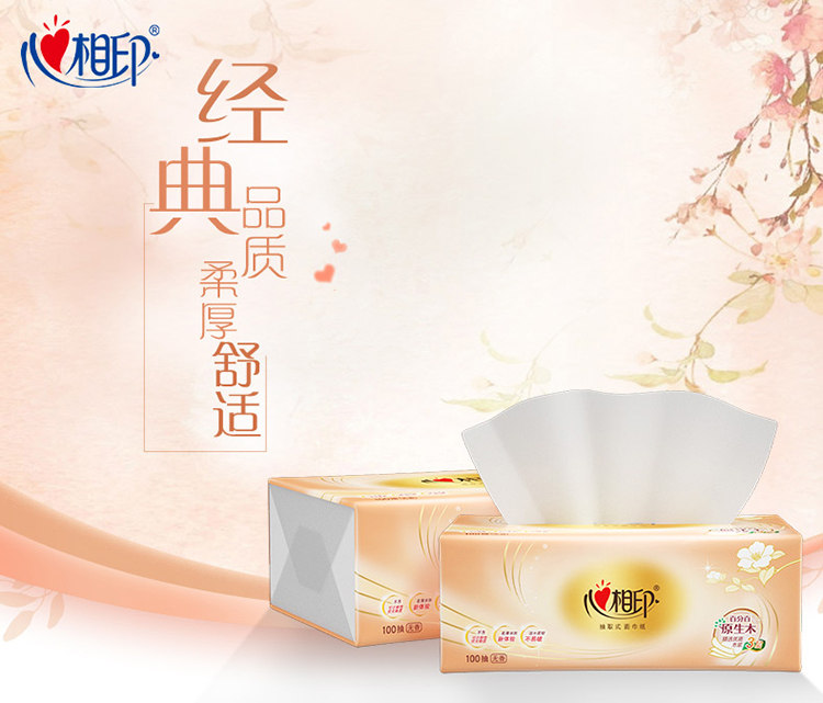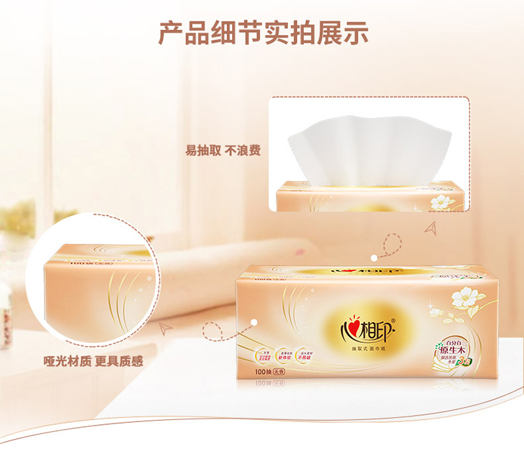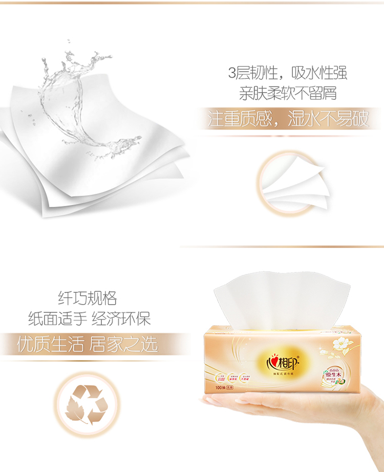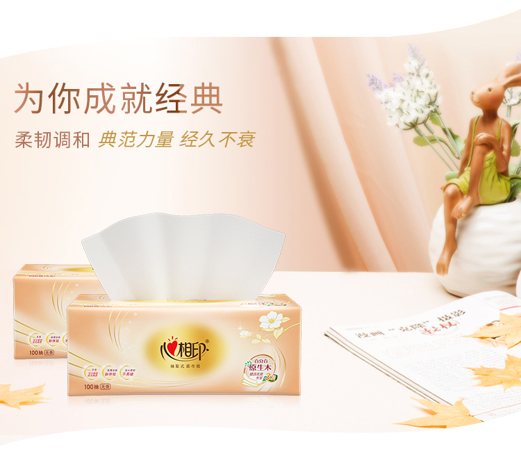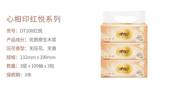 心相印 经典餐巾纸抽纸巾 DT100红悦 3层100抽3包 白色(单位:提)