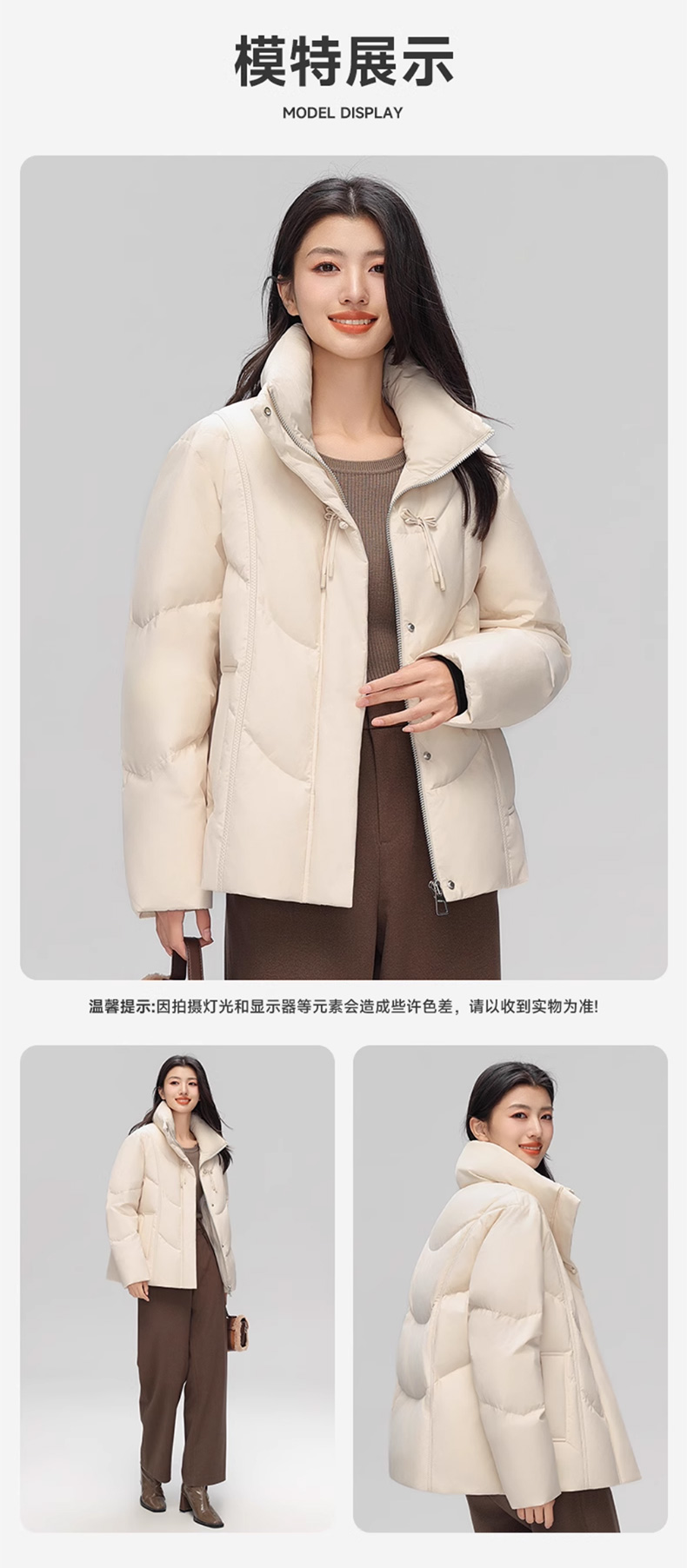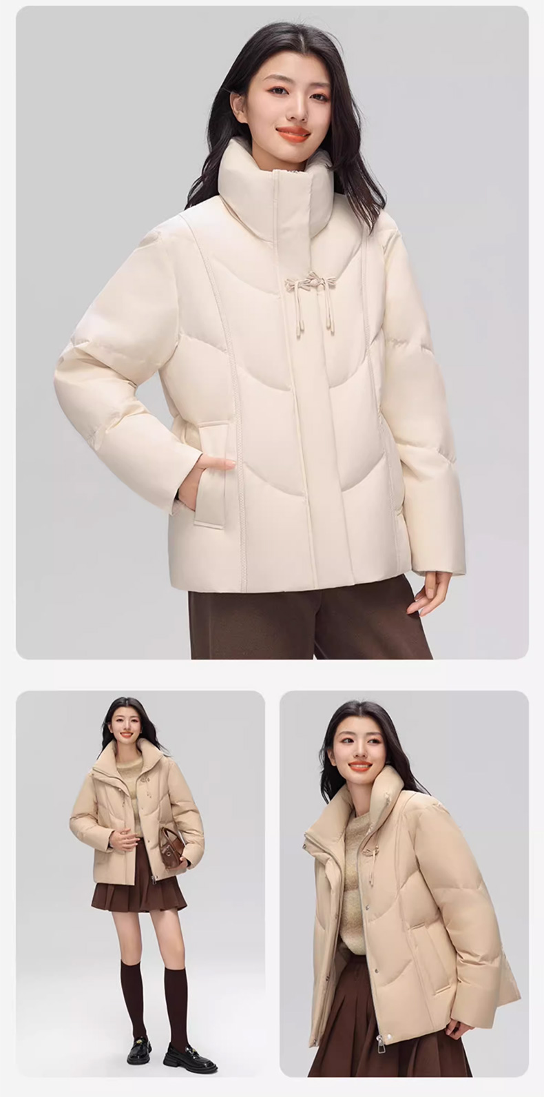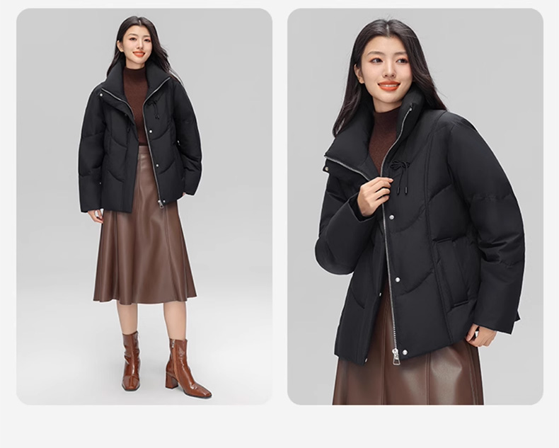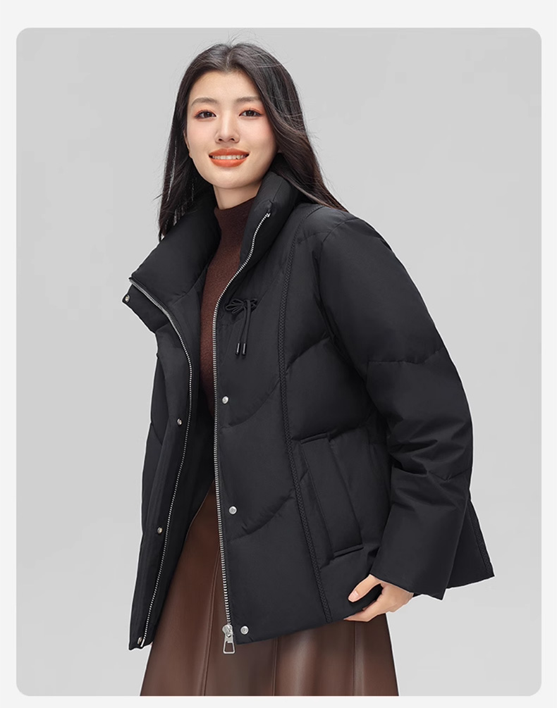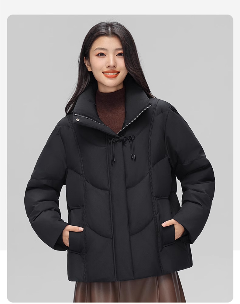 丰讯 新中式盘扣女式百搭短款冬季甜美立领保暖羽绒服外套 FXYL6880 羽绒服 XL 黑色(单位:件)