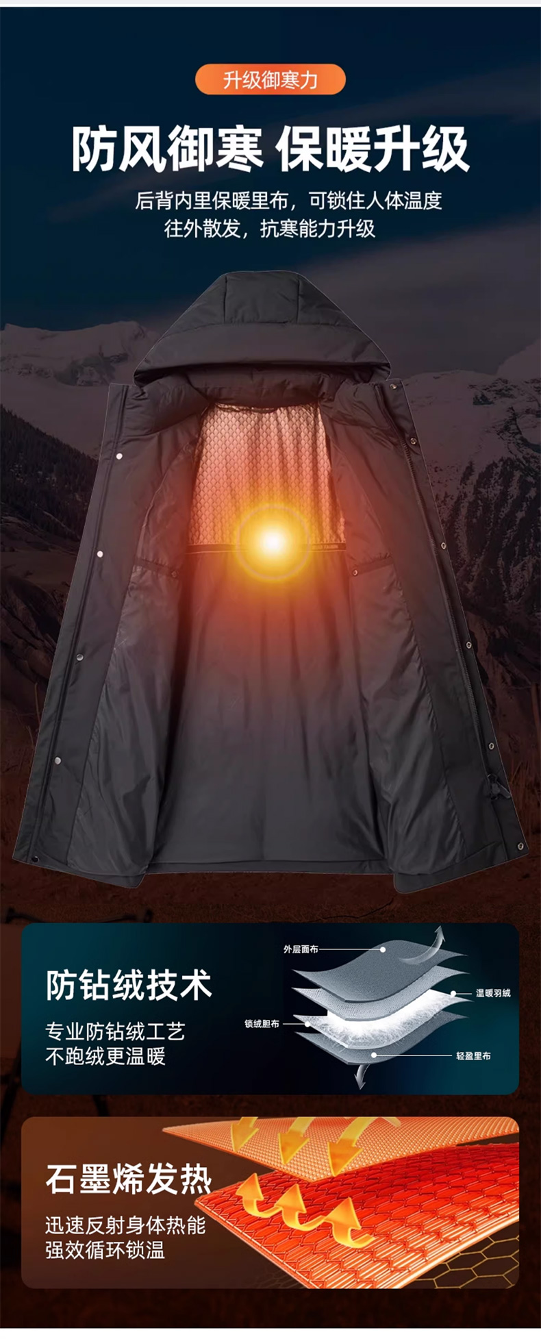 丰讯 【石墨烯】中长款男冬休闲商务季连帽防寒保暖外套 FXYL6858 羽绒服 170 灰绿(单位:件)