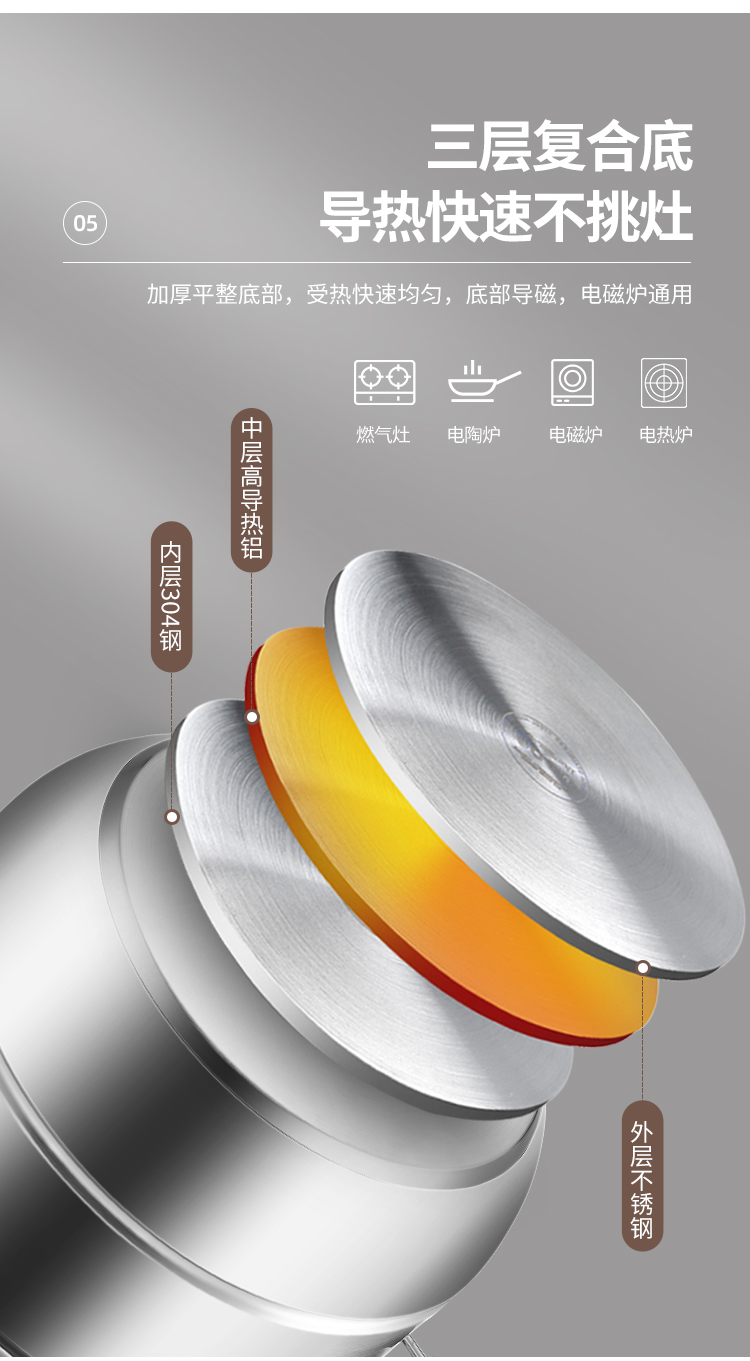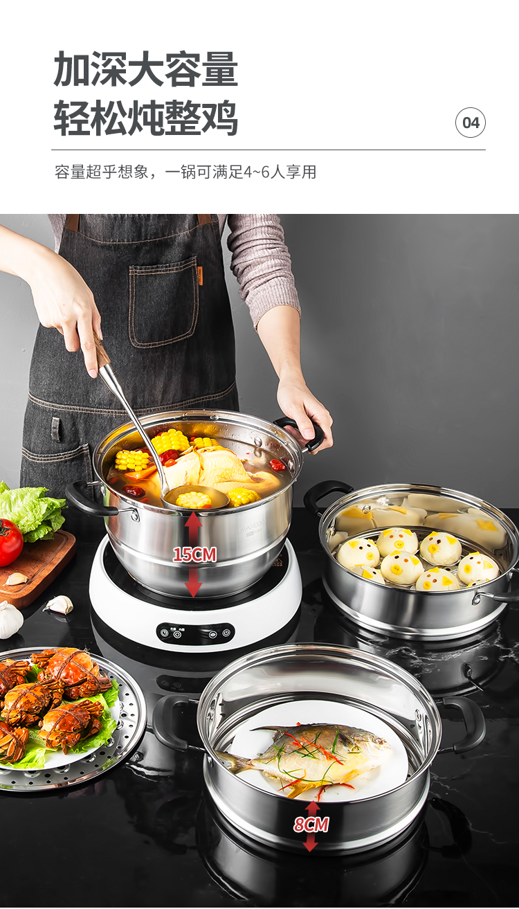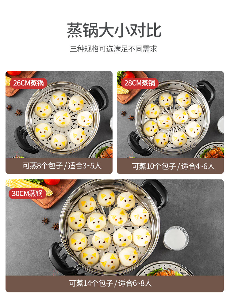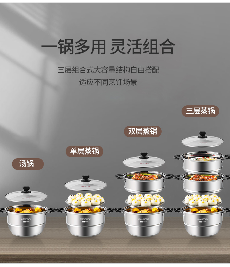 美厨(maxcook)304不锈钢蒸锅 26CM三层复底 燃气炉电磁炉通用MCZ692 不锈钢色
