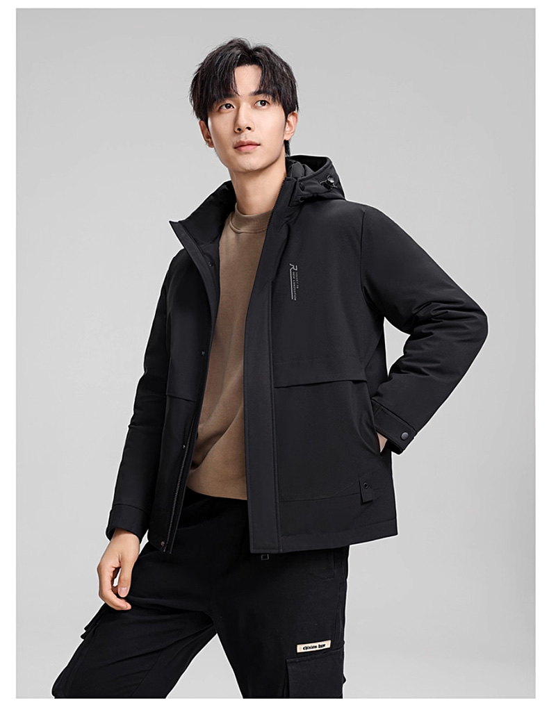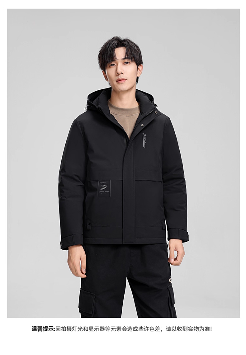 丰讯 男款冬季休闲商务时尚保暖防寒服可脱卸帽鸭绒衣外套 FXYL6876 羽绒服 190 黑色(单位:件)