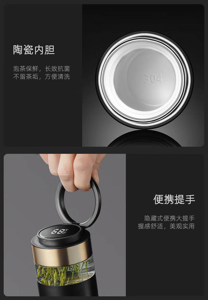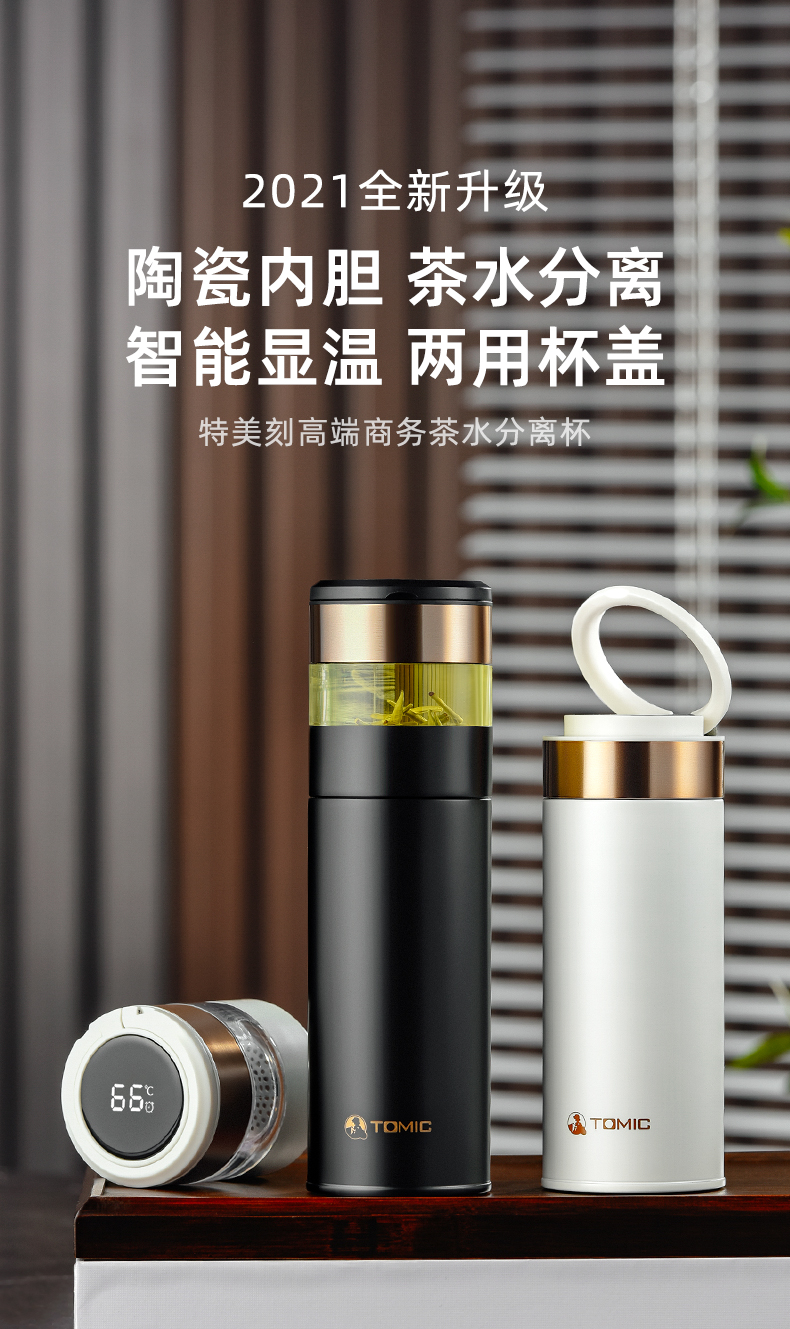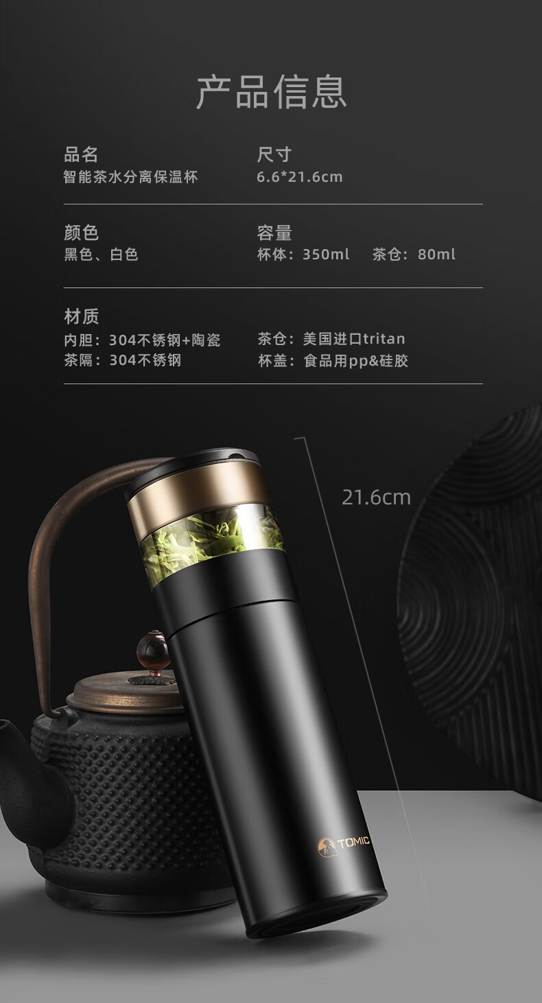 特美刻(TOMIC)智能保温杯陶瓷内胆茶水分离水杯 TW00050AC 350ml 单位:只 白色