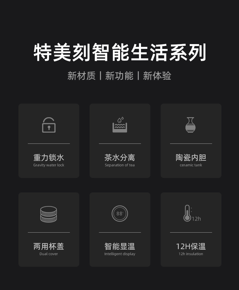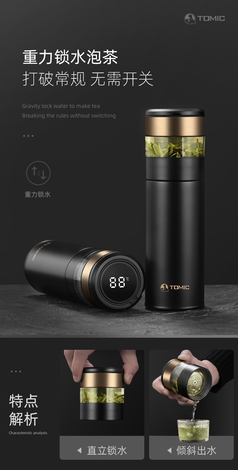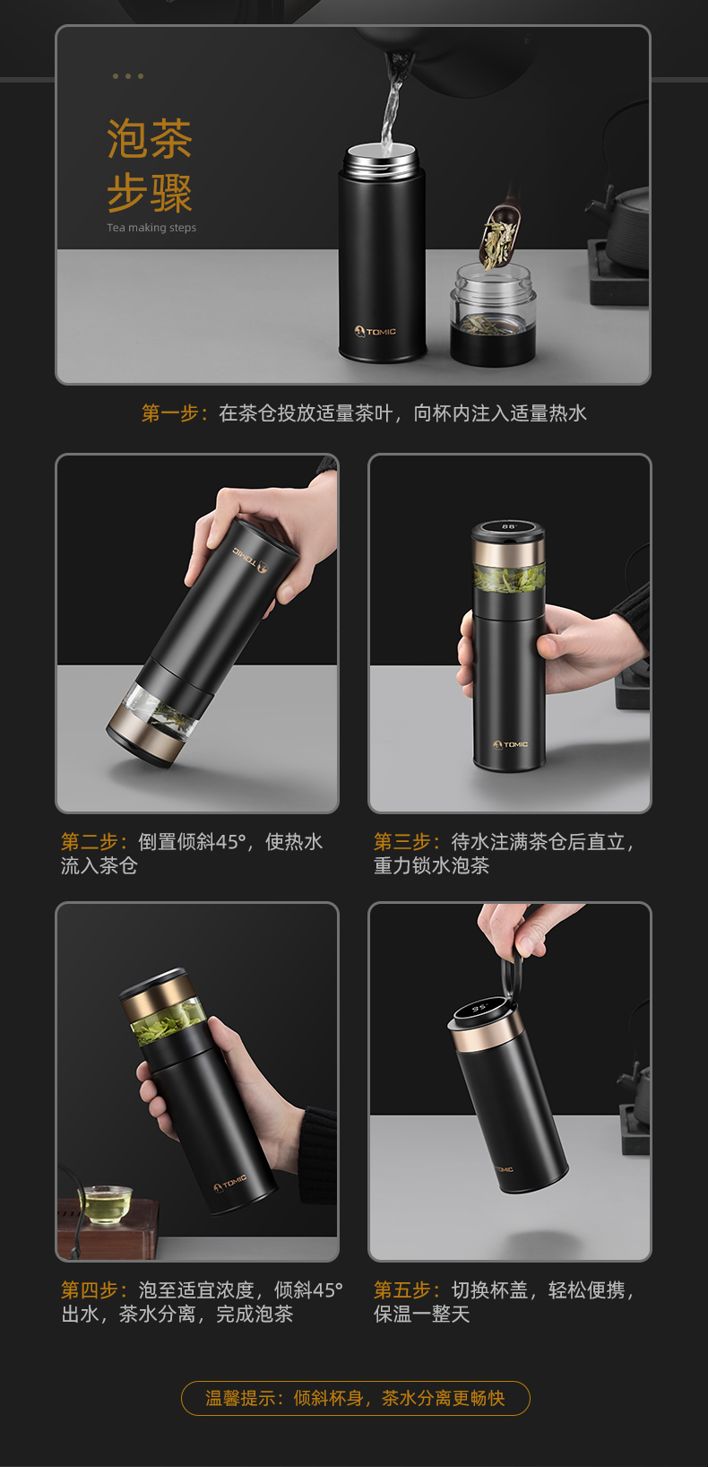 特美刻(TOMIC)智能保温杯陶瓷内胆茶水分离水杯 TW00050AC 350ml 单位:只 白色