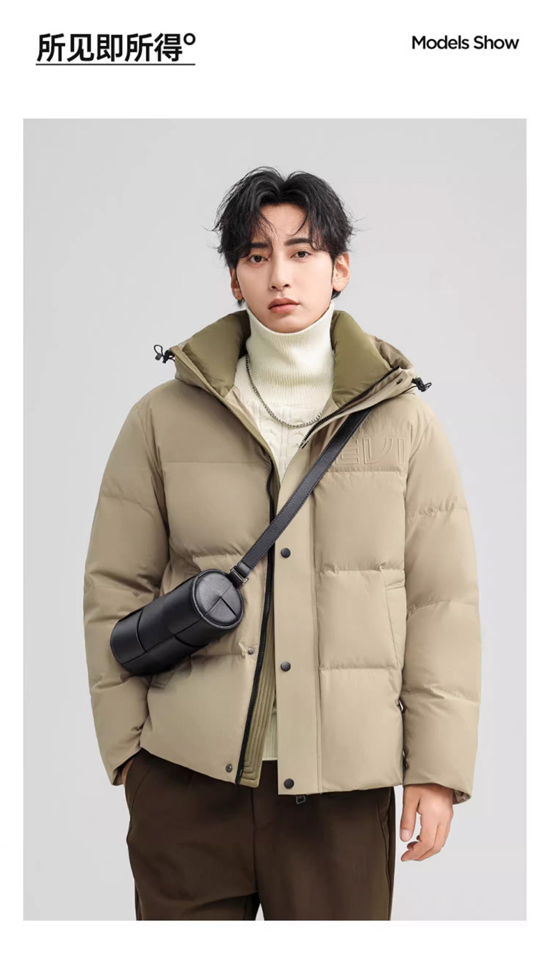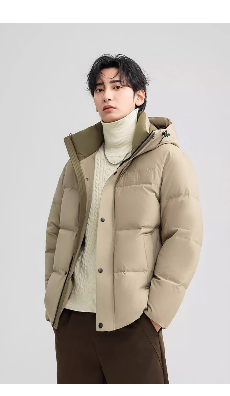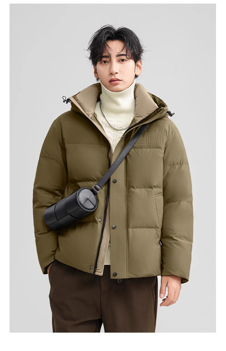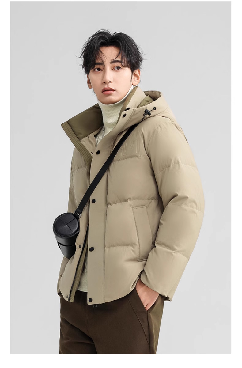 丰讯 男士短款连帽时尚保暖纯色百搭商务休闲外套 FXYL6852 羽绒服 180 咸菜绿(单位:件)