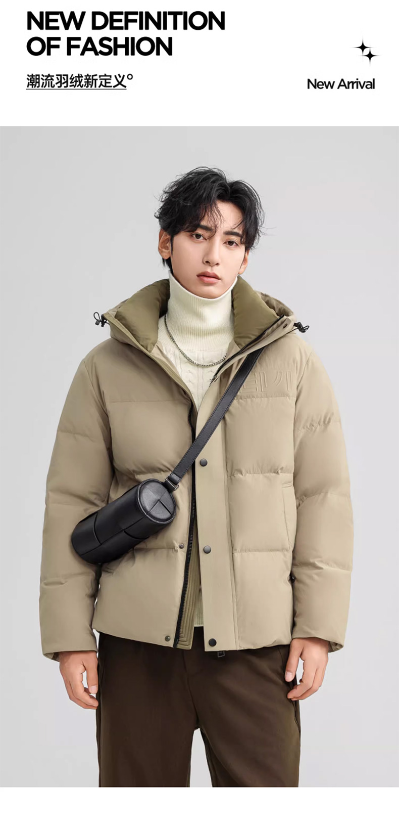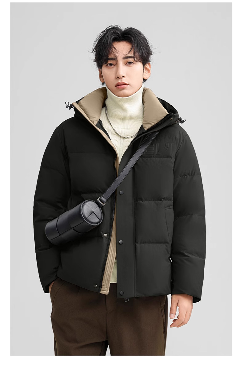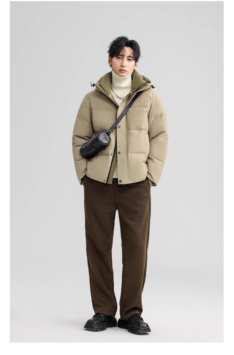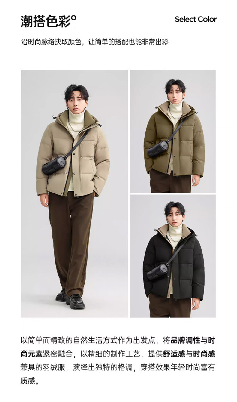 丰讯 男士短款连帽时尚保暖纯色百搭商务休闲外套 FXYL6852 羽绒服 180 咸菜绿(单位:件)