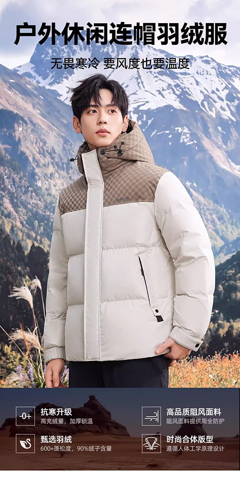 丰讯 可拆卸连帽男冬季短款撞色拼接面包服保暖羽绒服外套 FXYL6853 2XL 185 优雅米(单位:件)