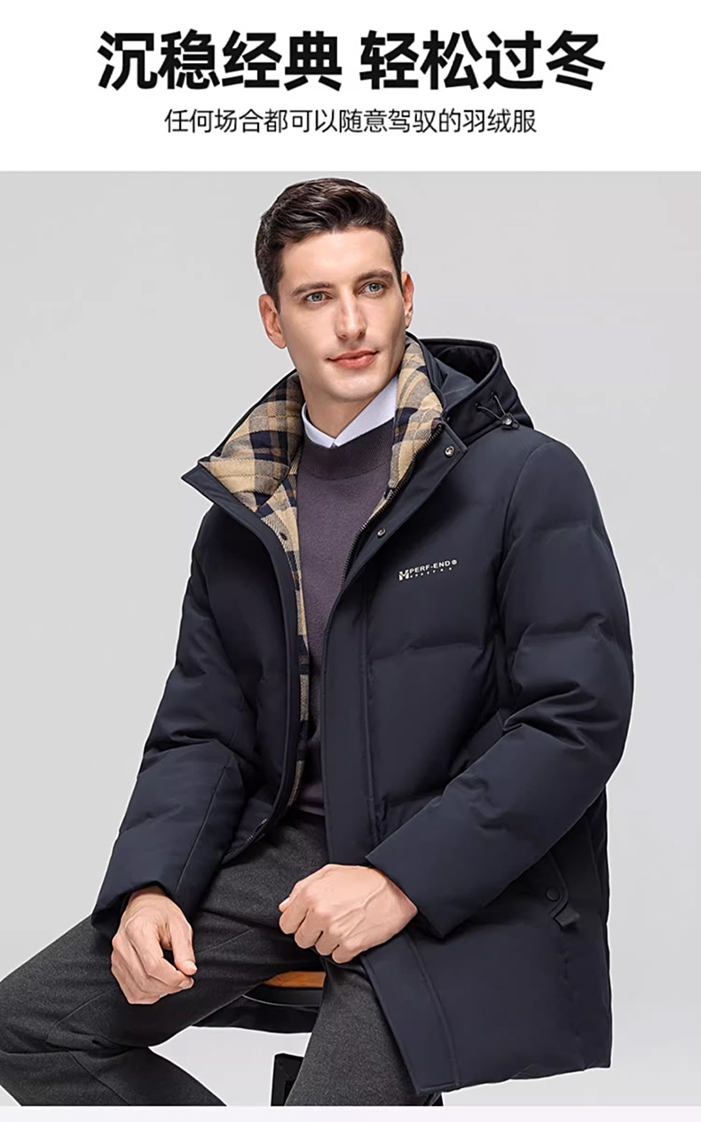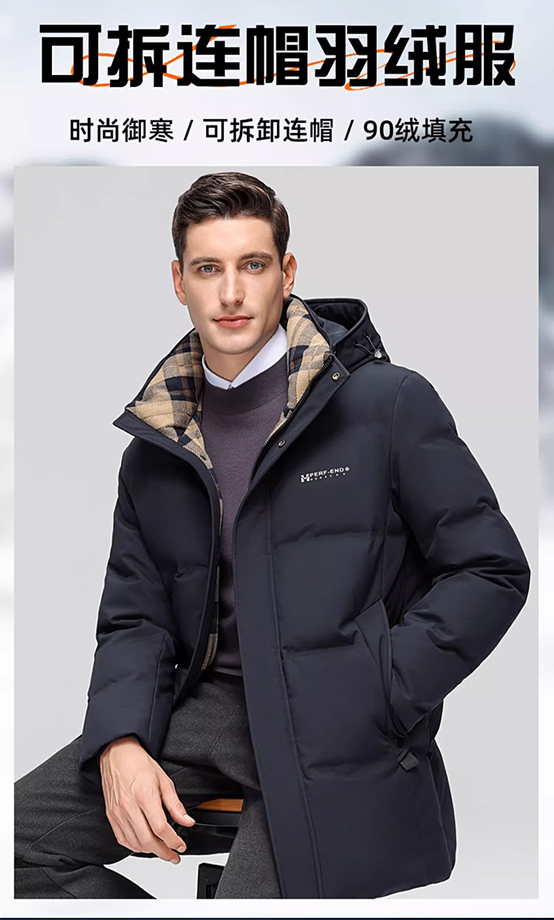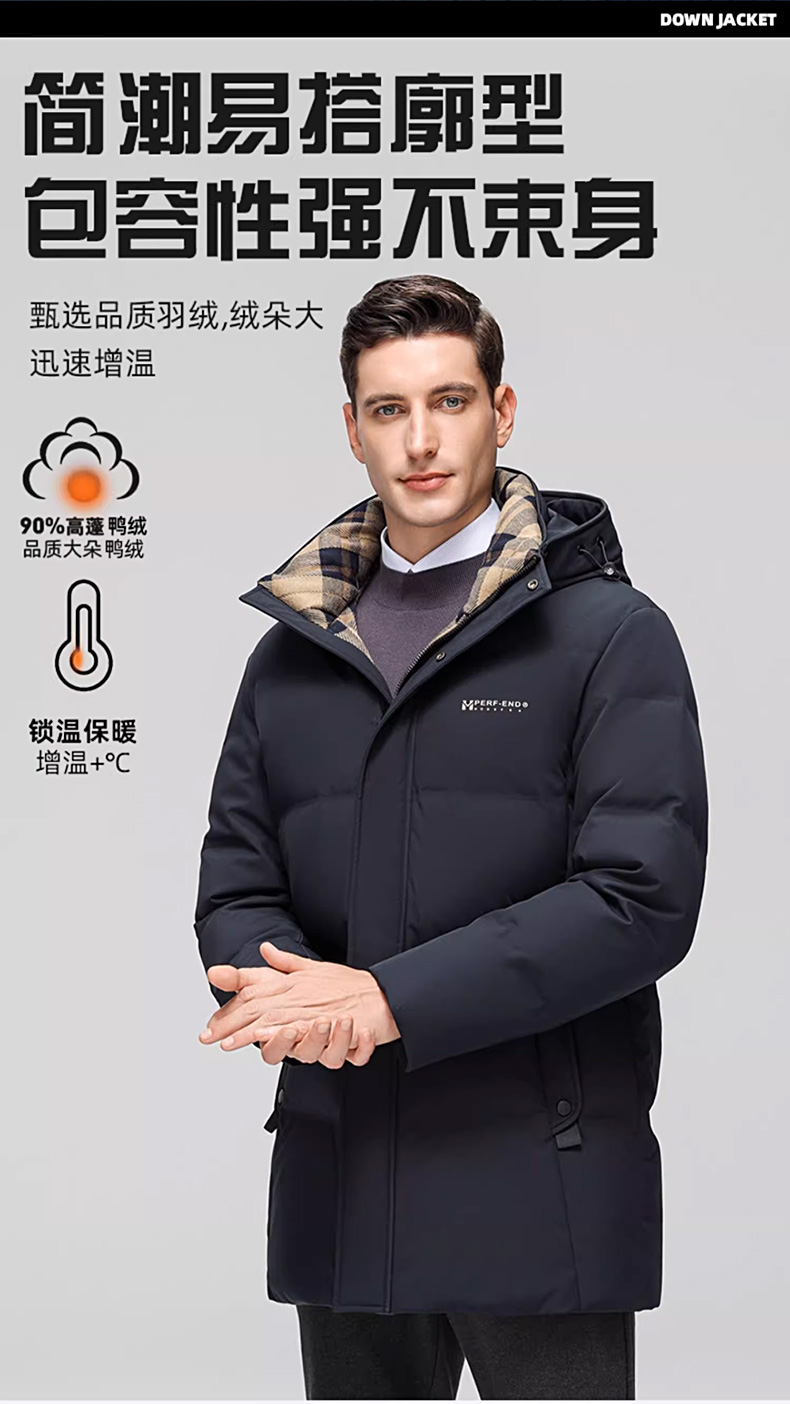 丰讯 【石墨烯】男士休闲商务冬季中长款连帽保暖羽绒服外套 FXYL6869 M 170 黑色(单位:件)