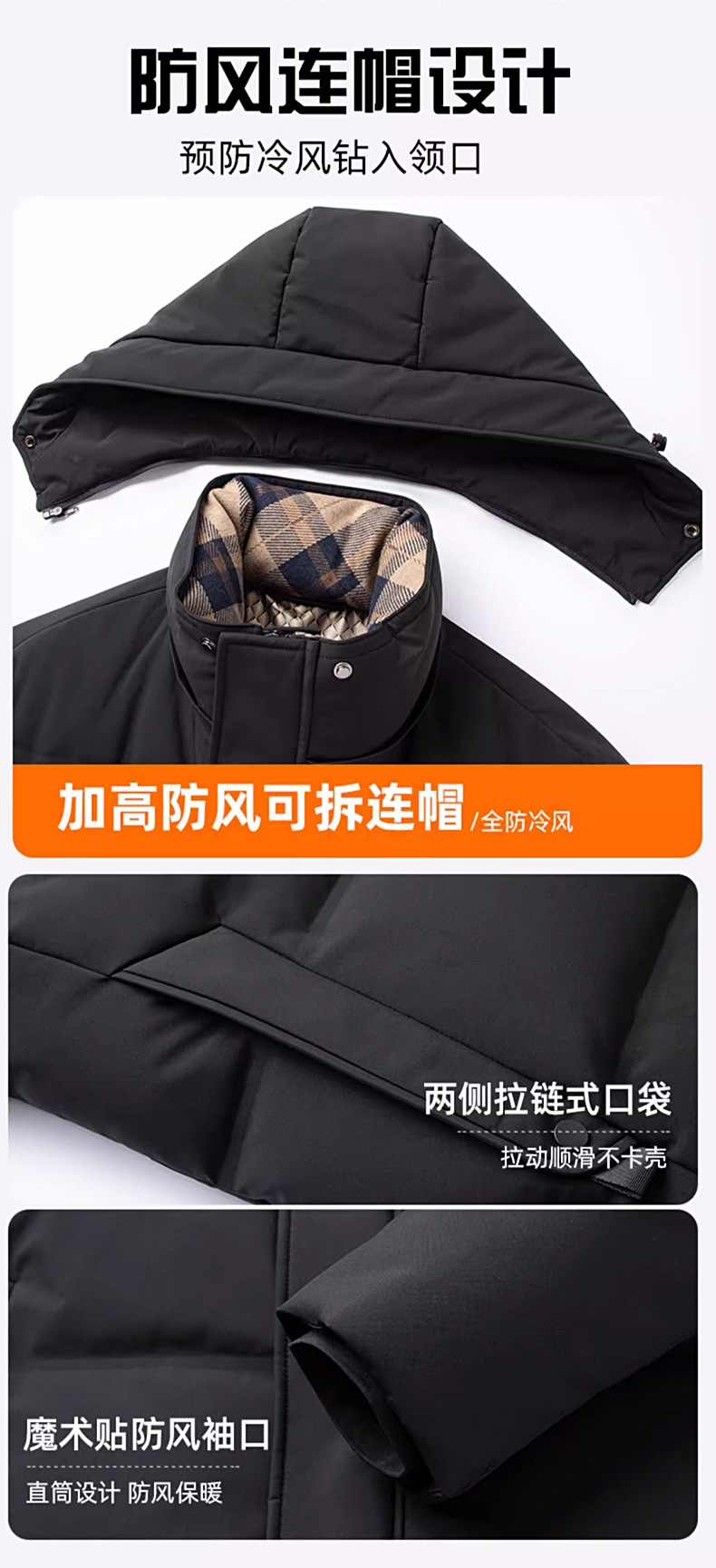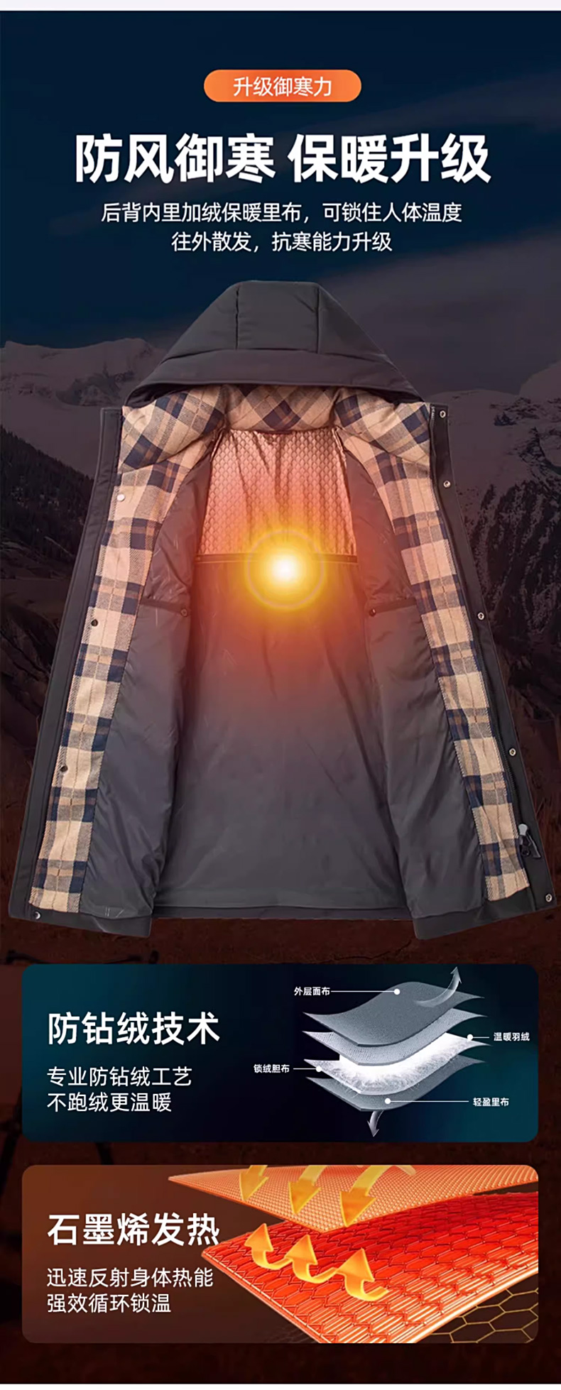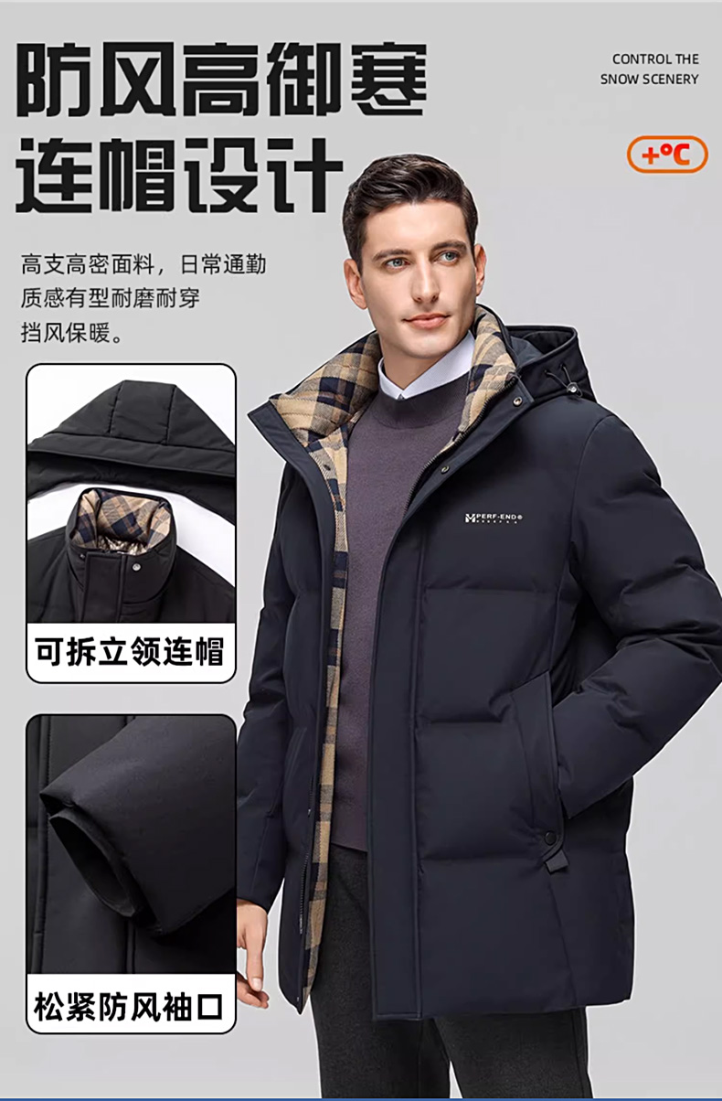 丰讯 【石墨烯】男士休闲商务冬季中长款连帽保暖羽绒服外套 FXYL6869 M 170 黑色(单位:件)