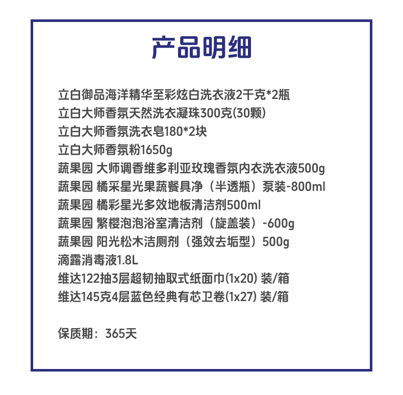 立白 /蔬果园/滴露/维达 衣液凝珠家清纸巾组合 7550g+3.1L+2块+20包+27卷 混色(单位:组)