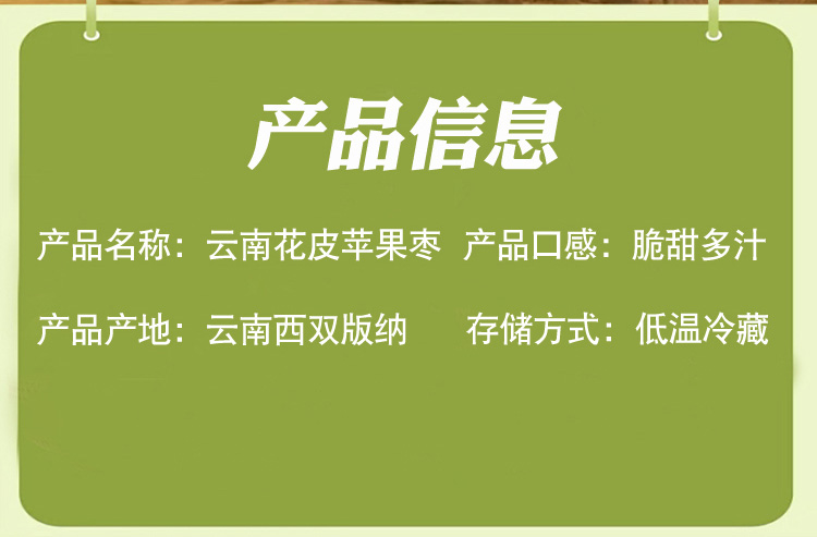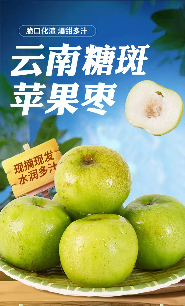 食欲跳动 清脆可口 滑嫩多汁 云南版纳糖斑苹果枣 3斤礼盒装(单果约80-100g) 绿色(单位:盒)